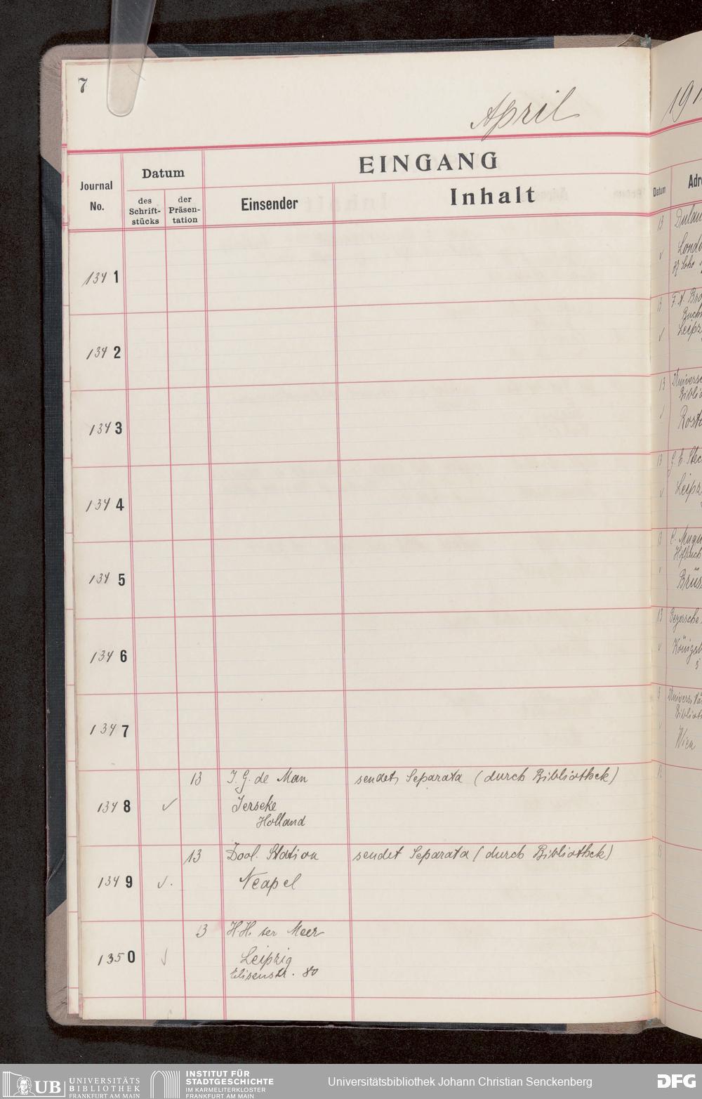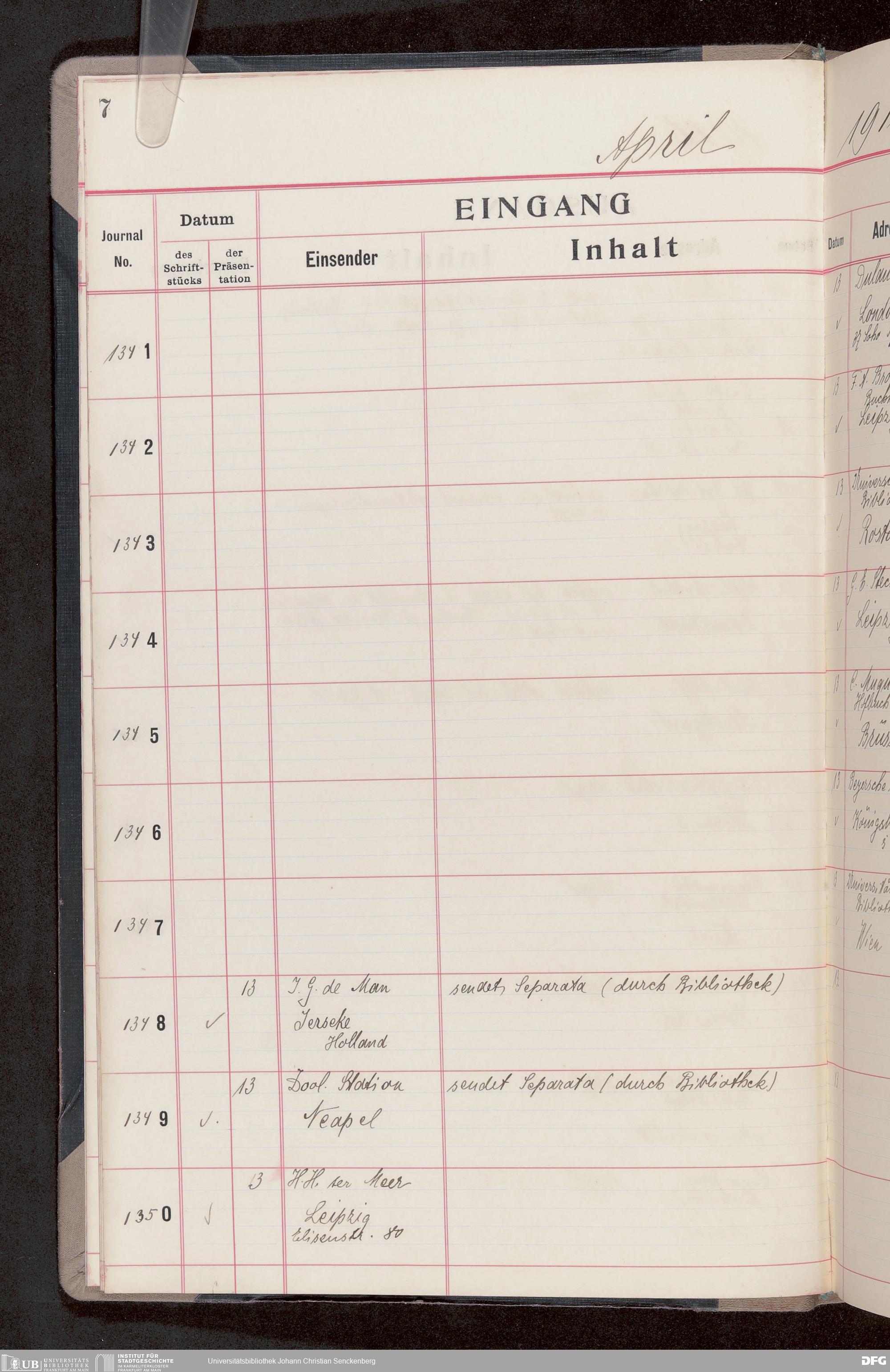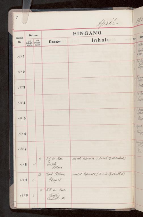 V176 Senckenberg Gesellschaft für Naturforschung, 682 - Journal der eingegangenen und ausgegangenen Briefe
