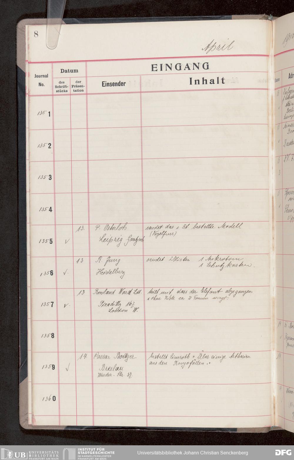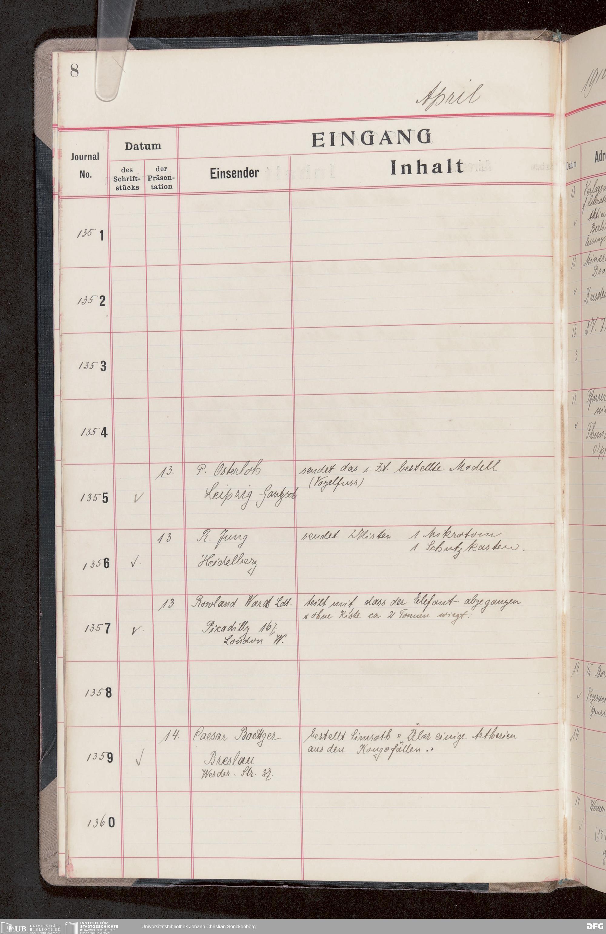 V176 Senckenberg Gesellschaft für Naturforschung, 682 - Journal der eingegangenen und ausgegangenen Briefe