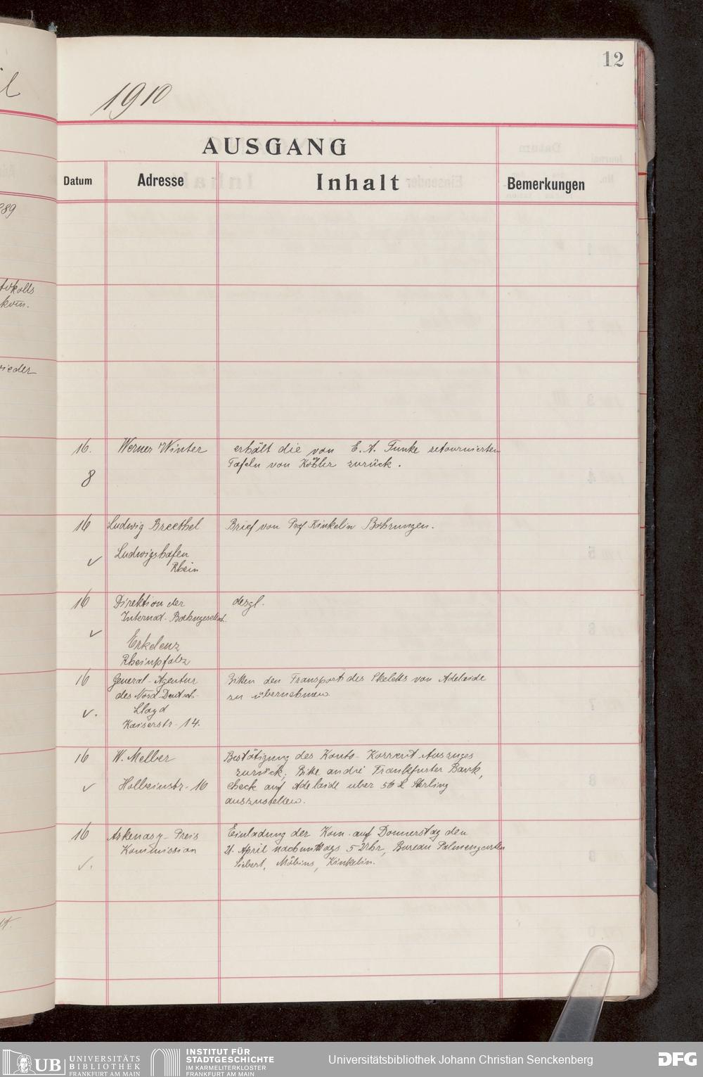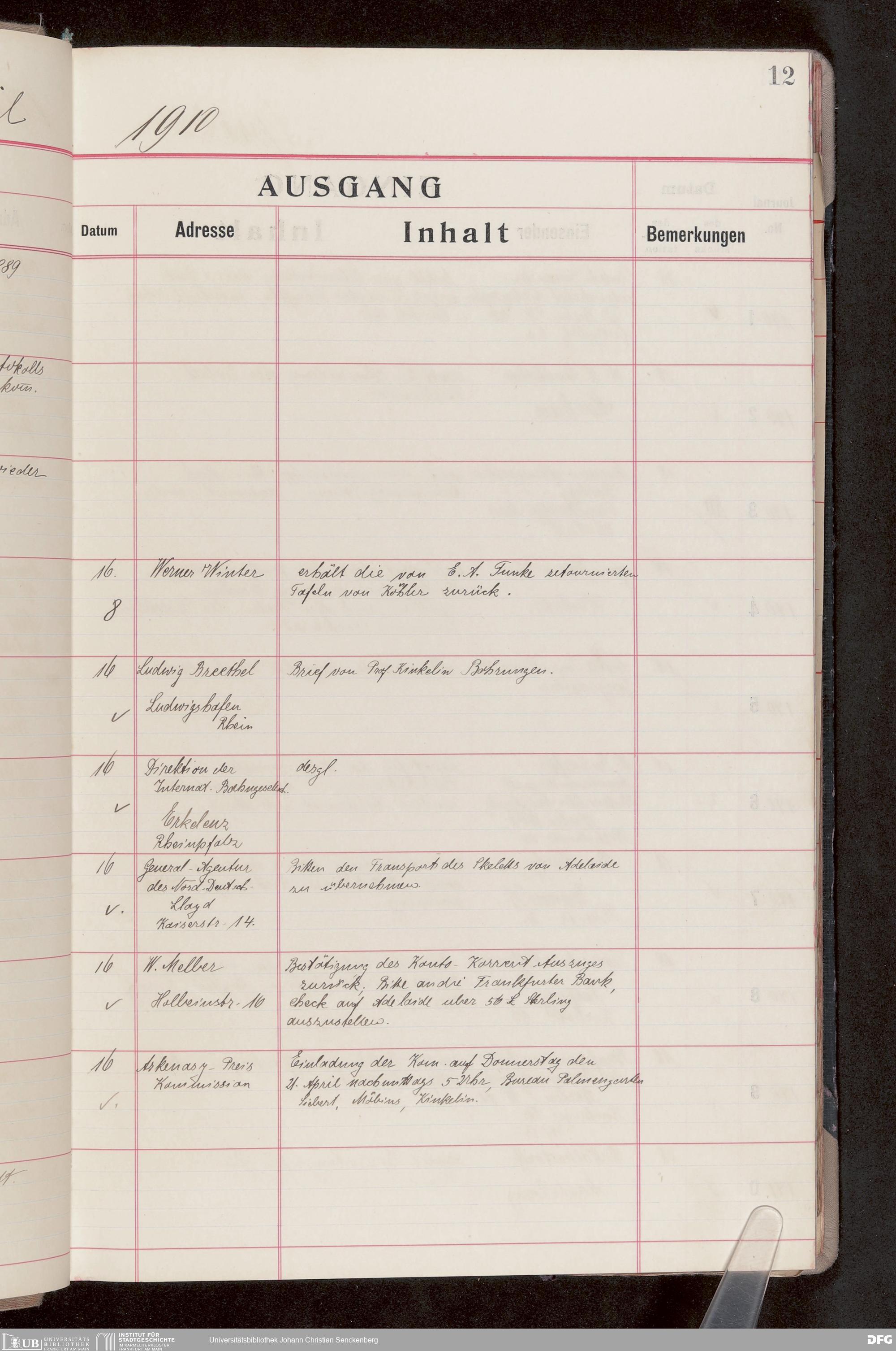 V176 Senckenberg Gesellschaft für Naturforschung, 682 - Journal der eingegangenen und ausgegangenen Briefe