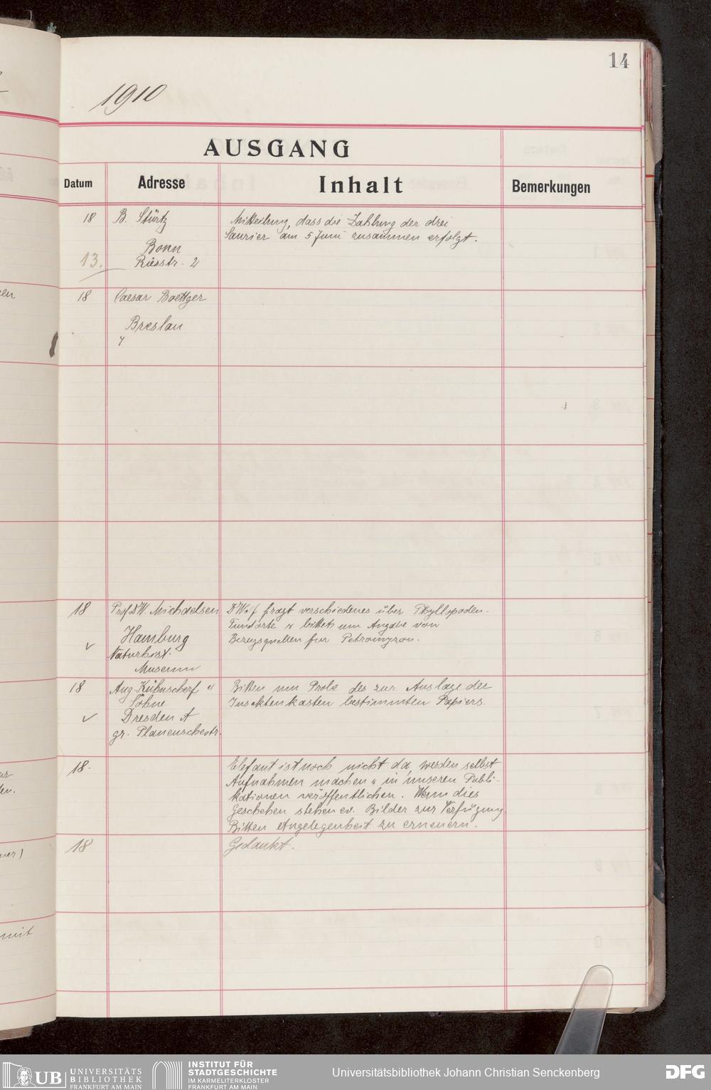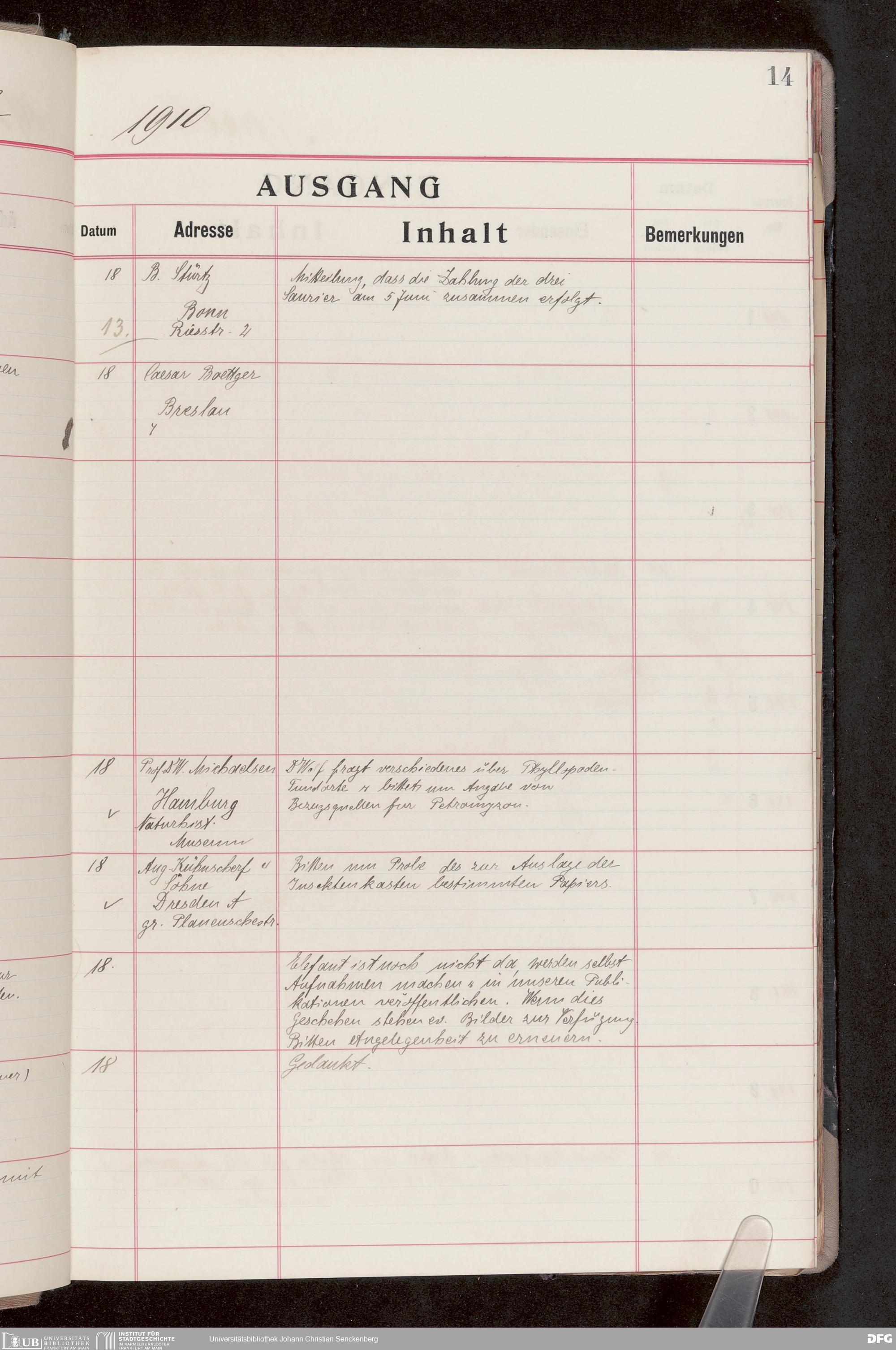 V176 Senckenberg Gesellschaft für Naturforschung, 682 - Journal der eingegangenen und ausgegangenen Briefe