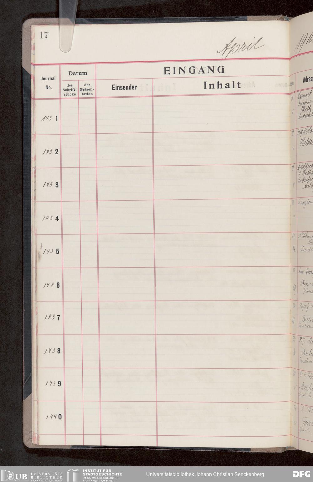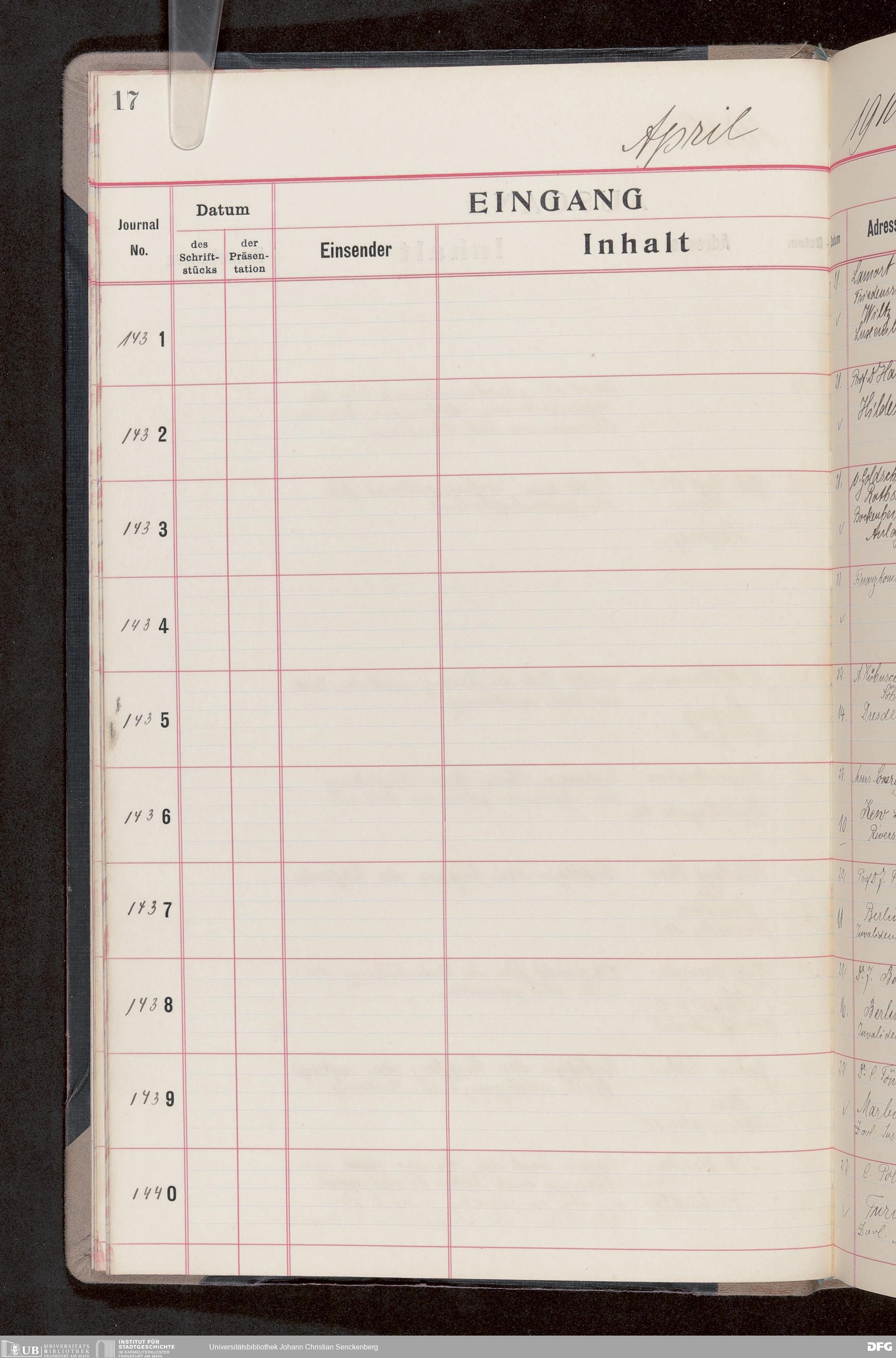 V176 Senckenberg Gesellschaft für Naturforschung, 682 - Journal der eingegangenen und ausgegangenen Briefe