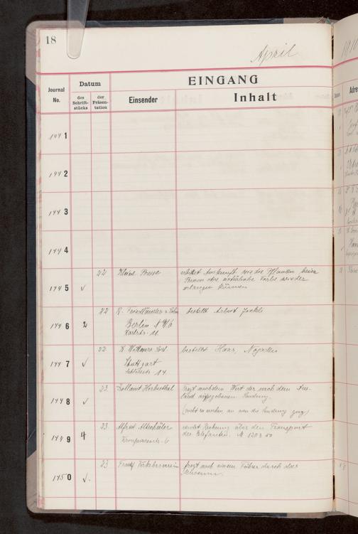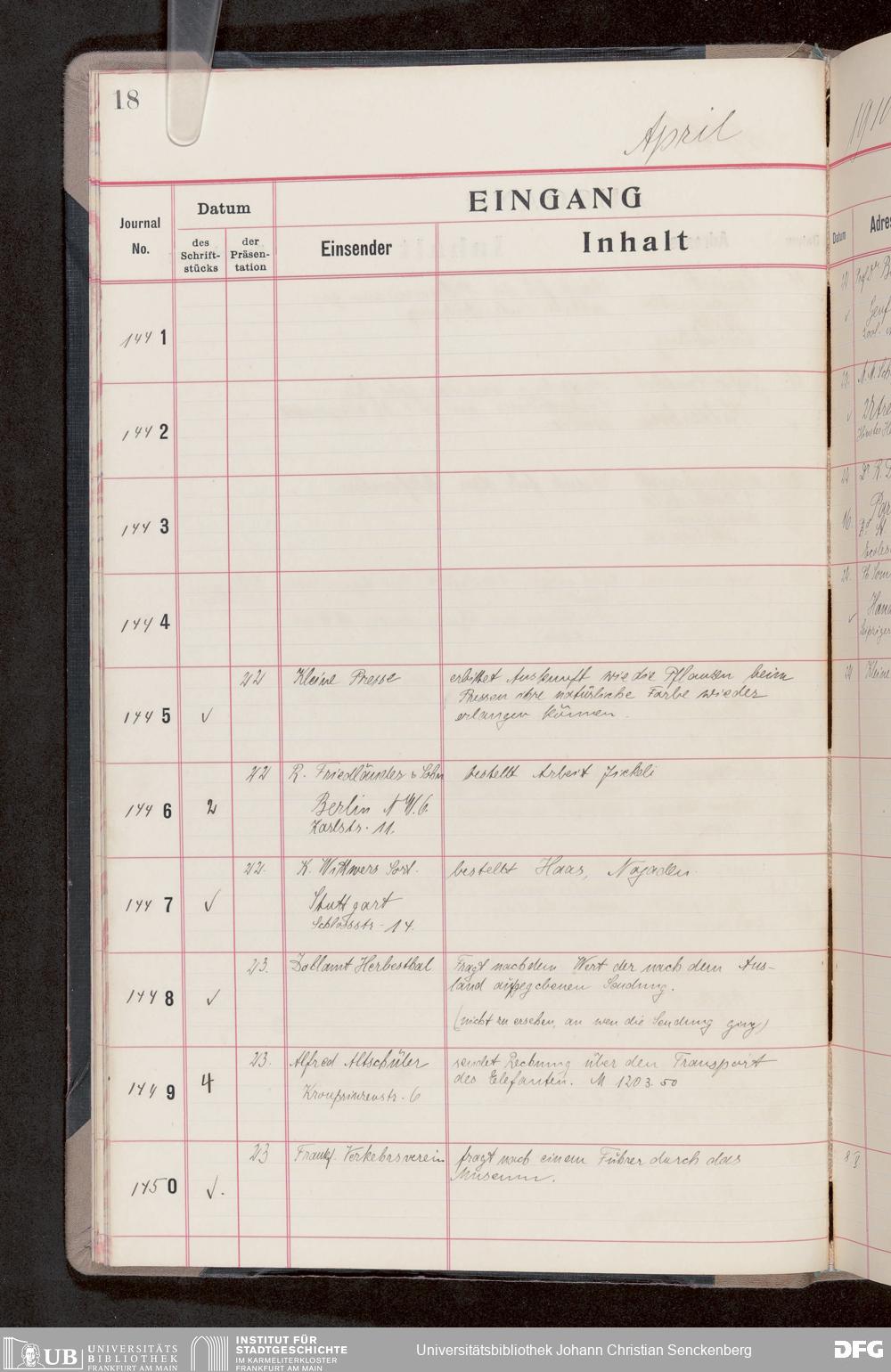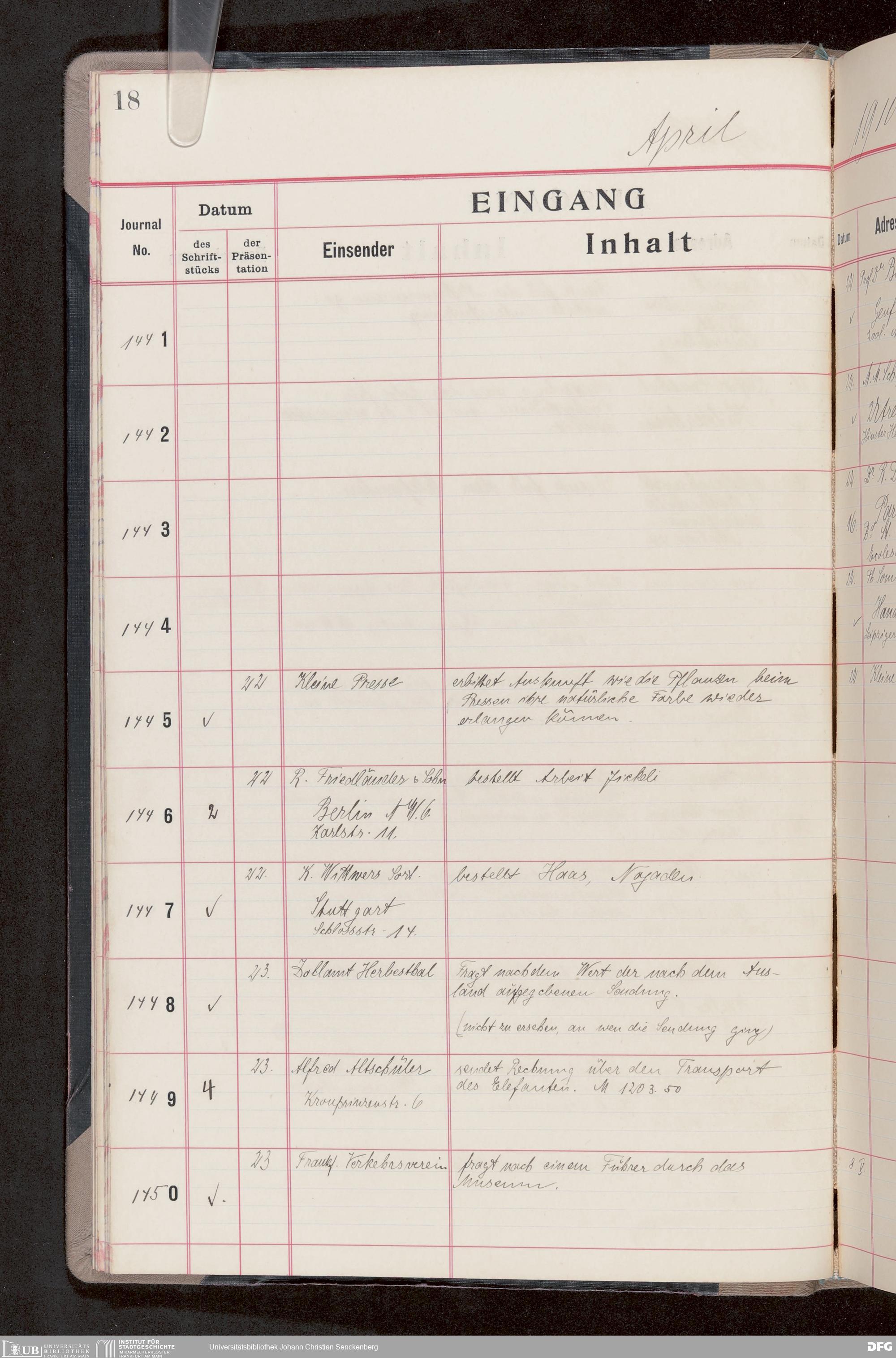 V176 Senckenberg Gesellschaft für Naturforschung, 682 - Journal der eingegangenen und ausgegangenen Briefe