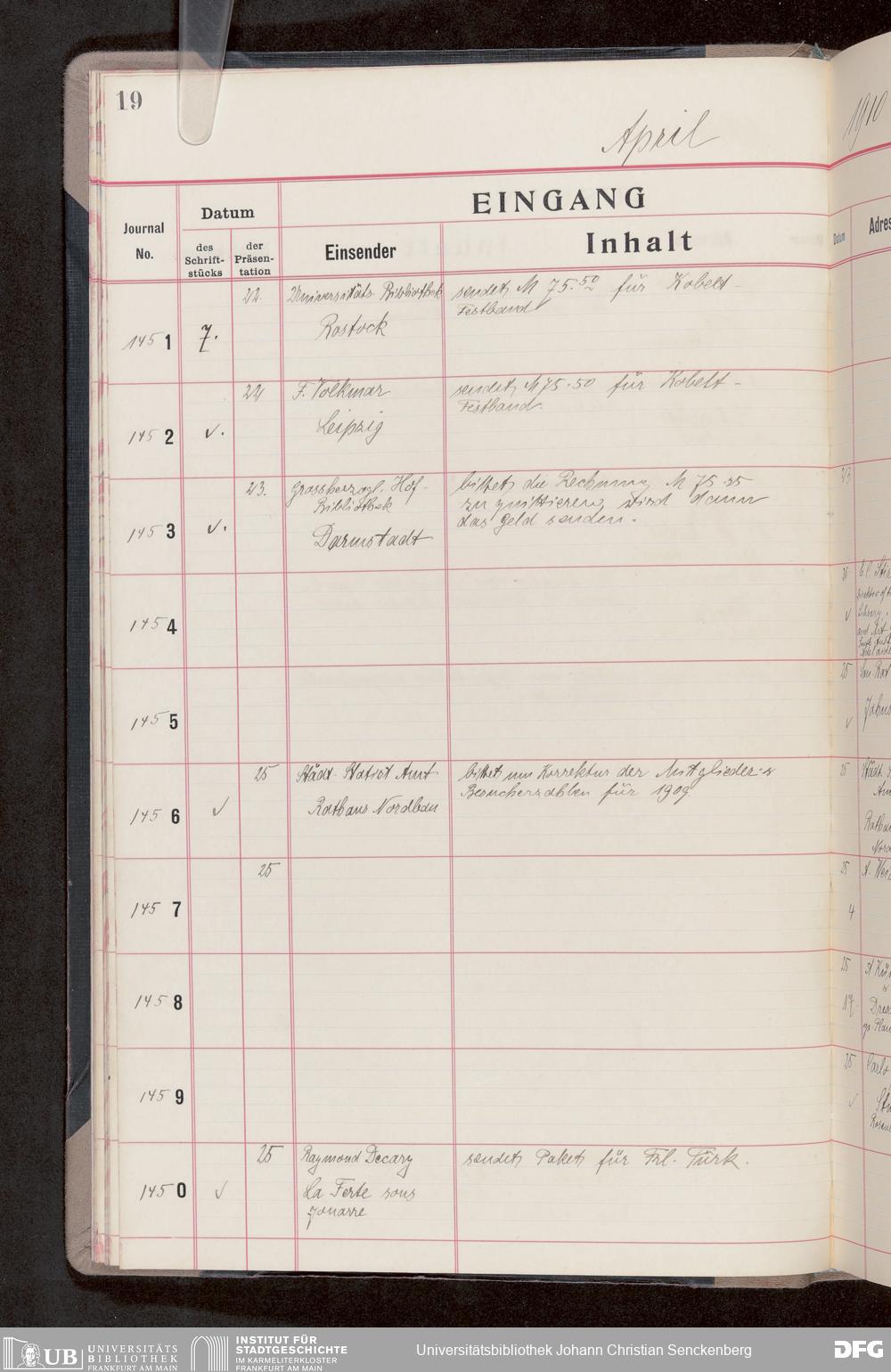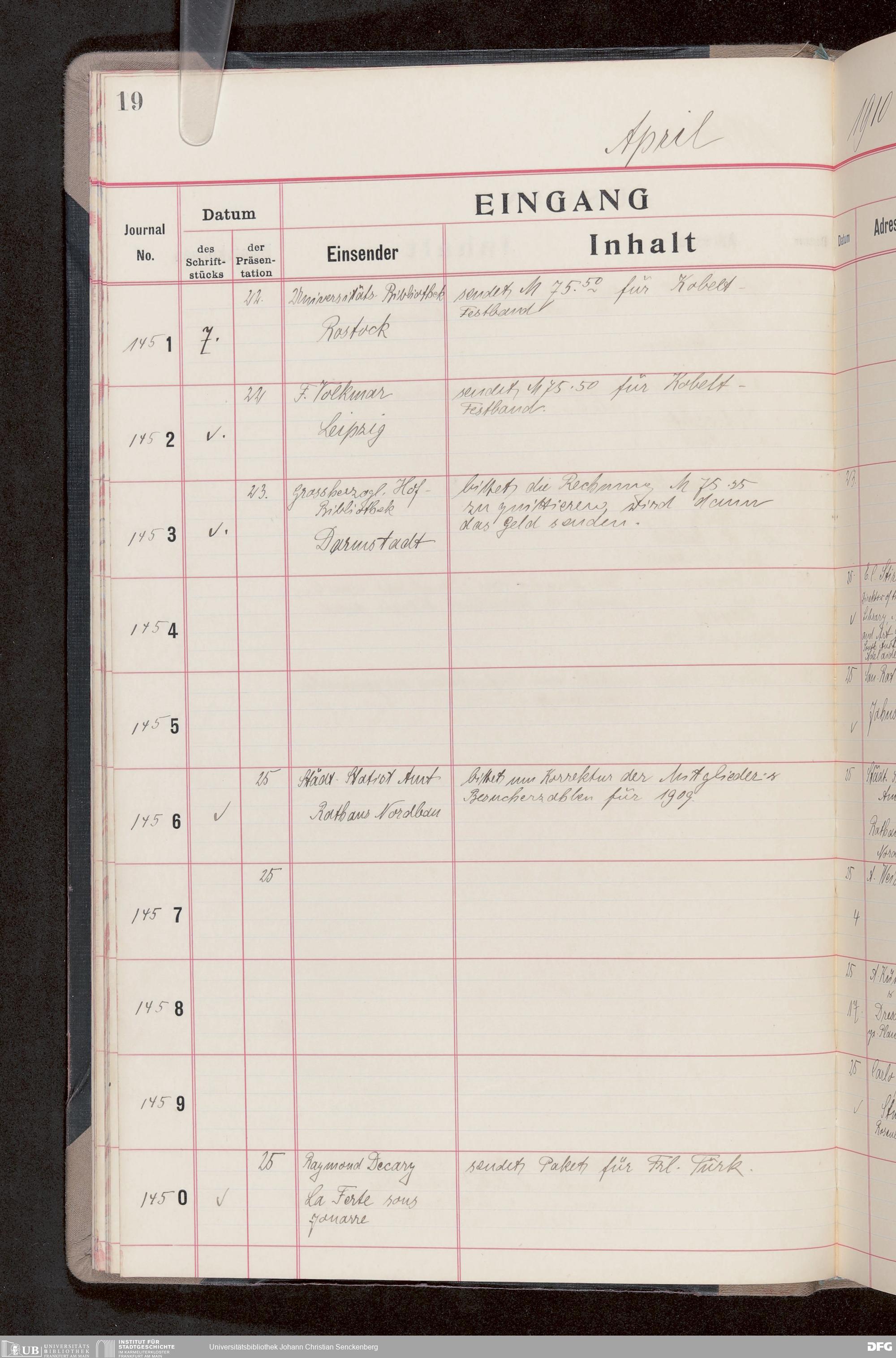 V176 Senckenberg Gesellschaft für Naturforschung, 682 - Journal der eingegangenen und ausgegangenen Briefe