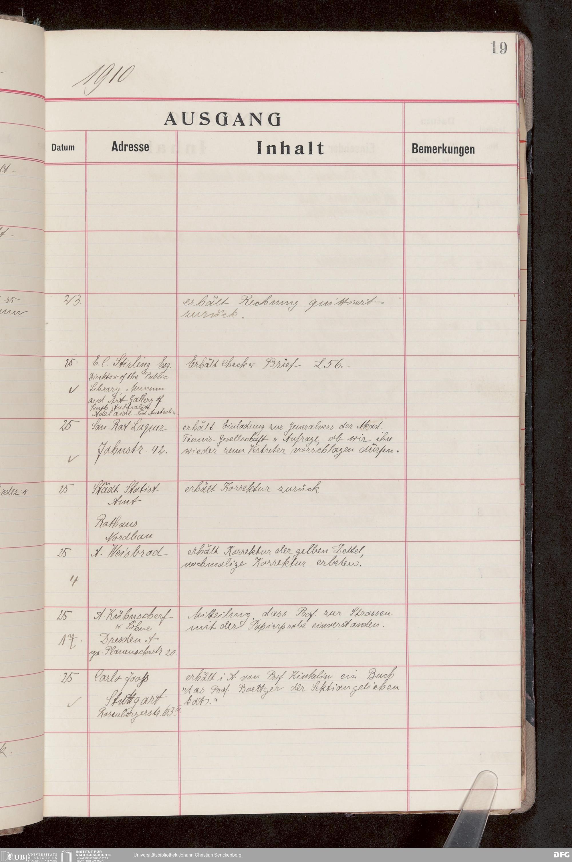 V176 Senckenberg Gesellschaft für Naturforschung, 682 - Journal der eingegangenen und ausgegangenen Briefe