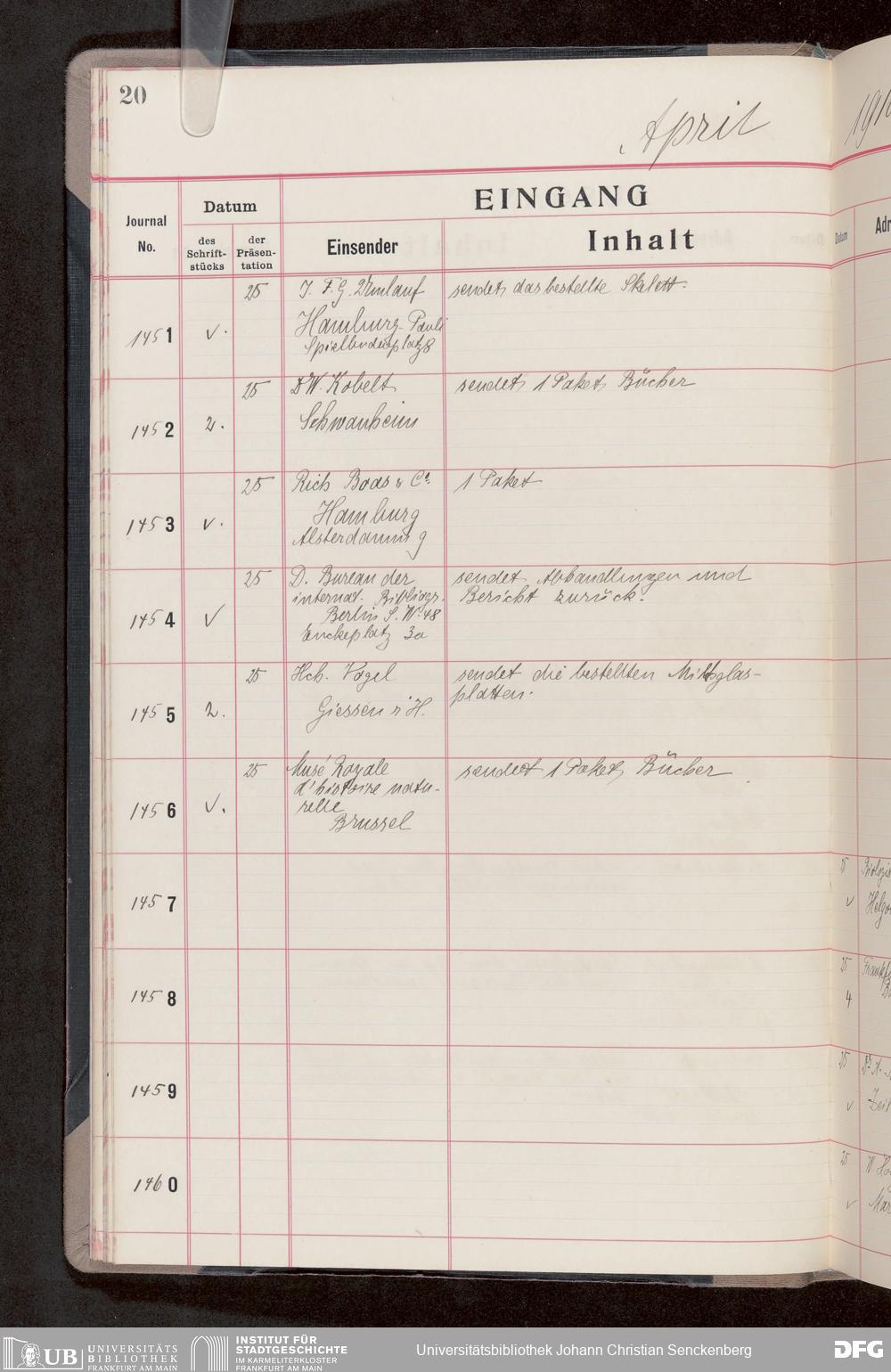 V176 Senckenberg Gesellschaft für Naturforschung, 682 - Journal der eingegangenen und ausgegangenen Briefe