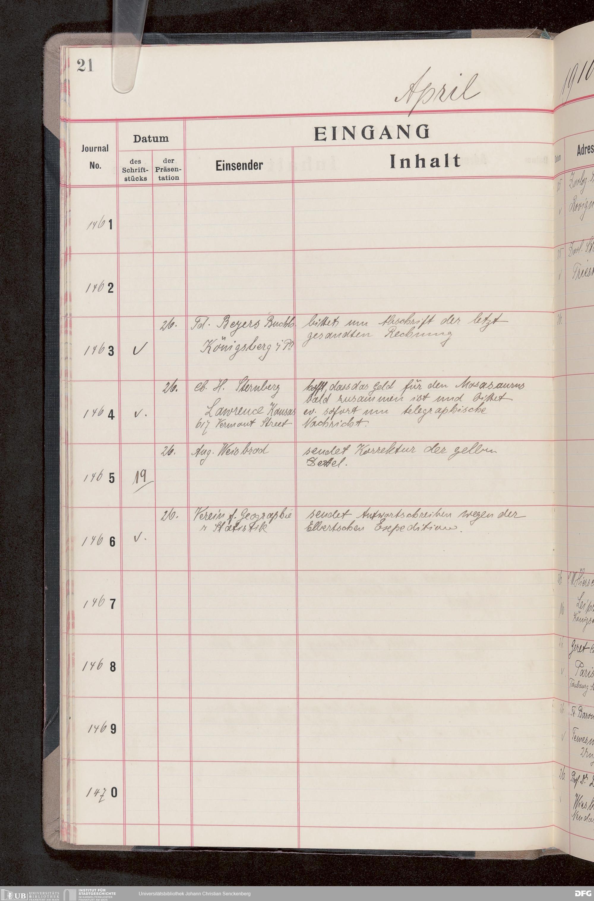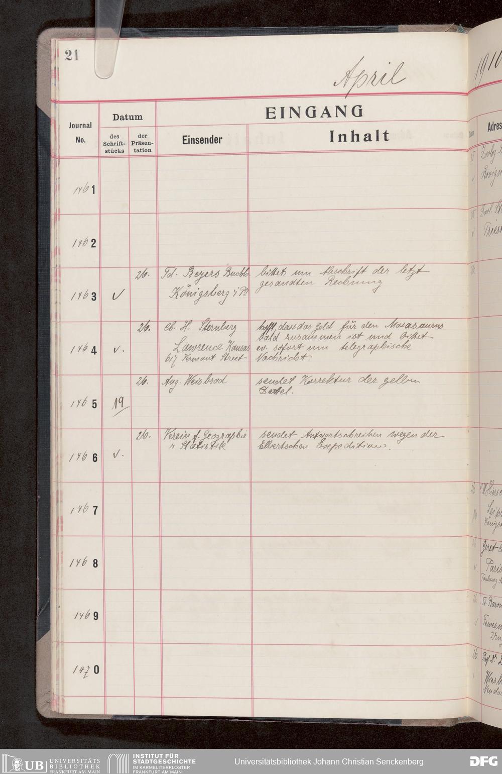 V176 Senckenberg Gesellschaft für Naturforschung, 682 - Journal der eingegangenen und ausgegangenen Briefe