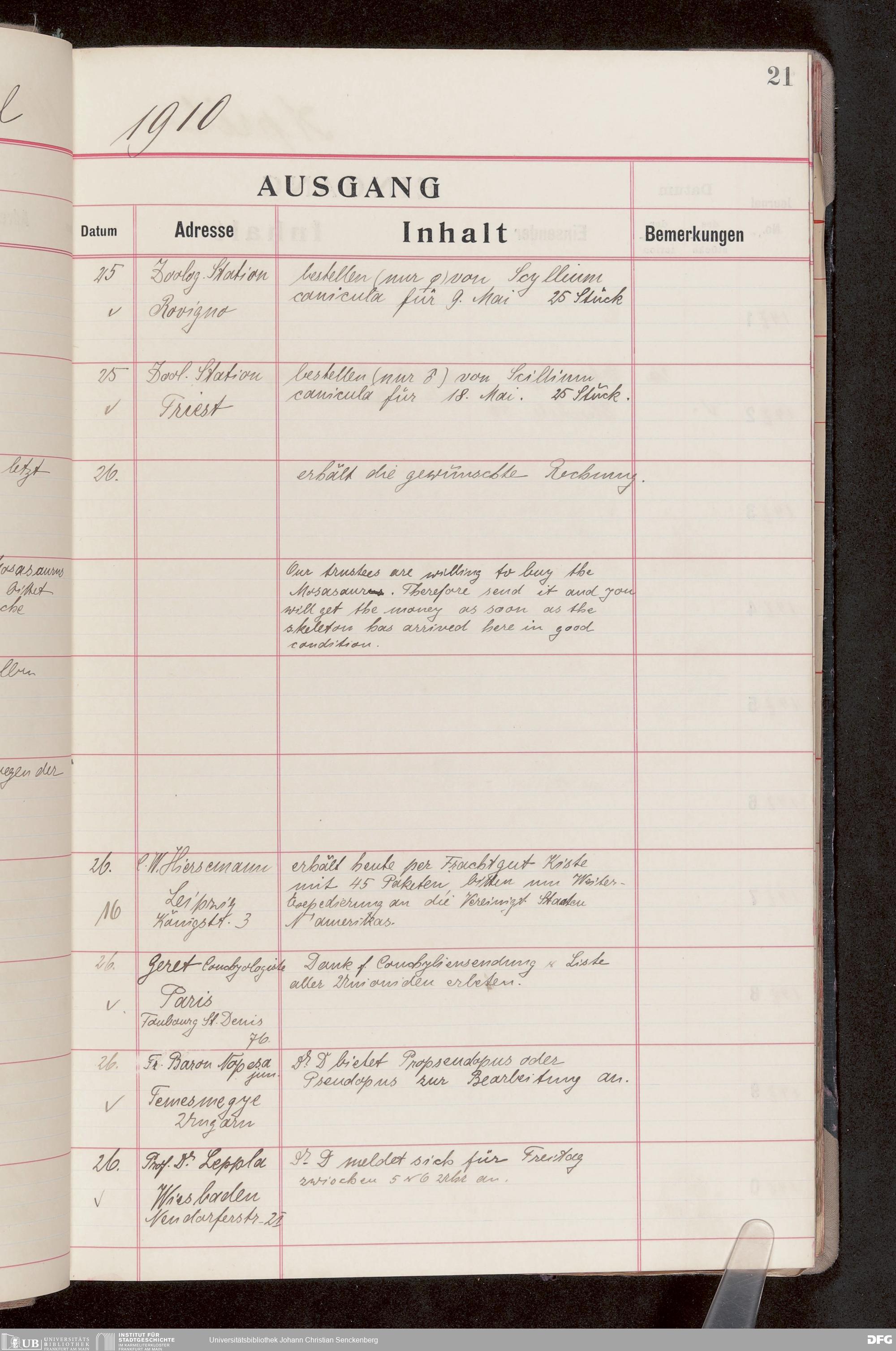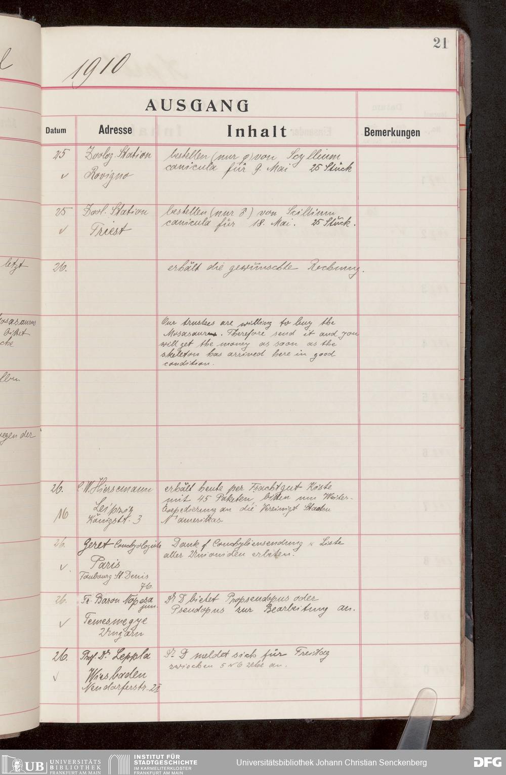 V176 Senckenberg Gesellschaft für Naturforschung, 682 - Journal der eingegangenen und ausgegangenen Briefe