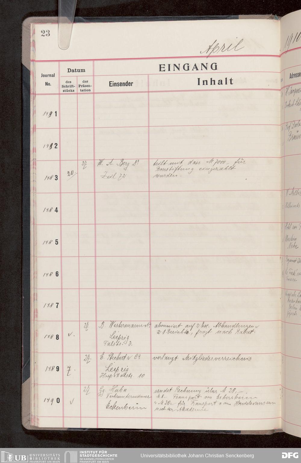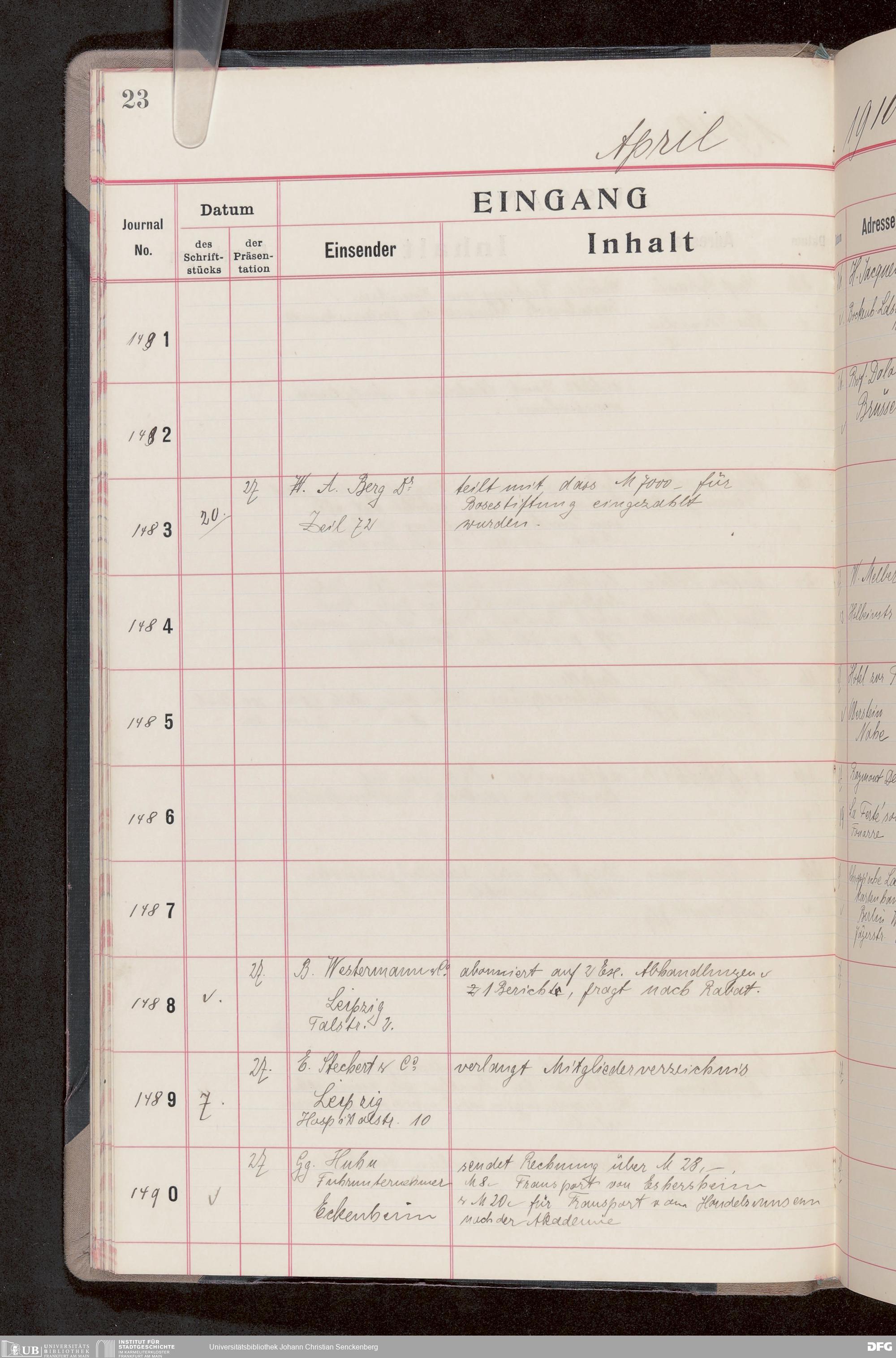 V176 Senckenberg Gesellschaft für Naturforschung, 682 - Journal der eingegangenen und ausgegangenen Briefe