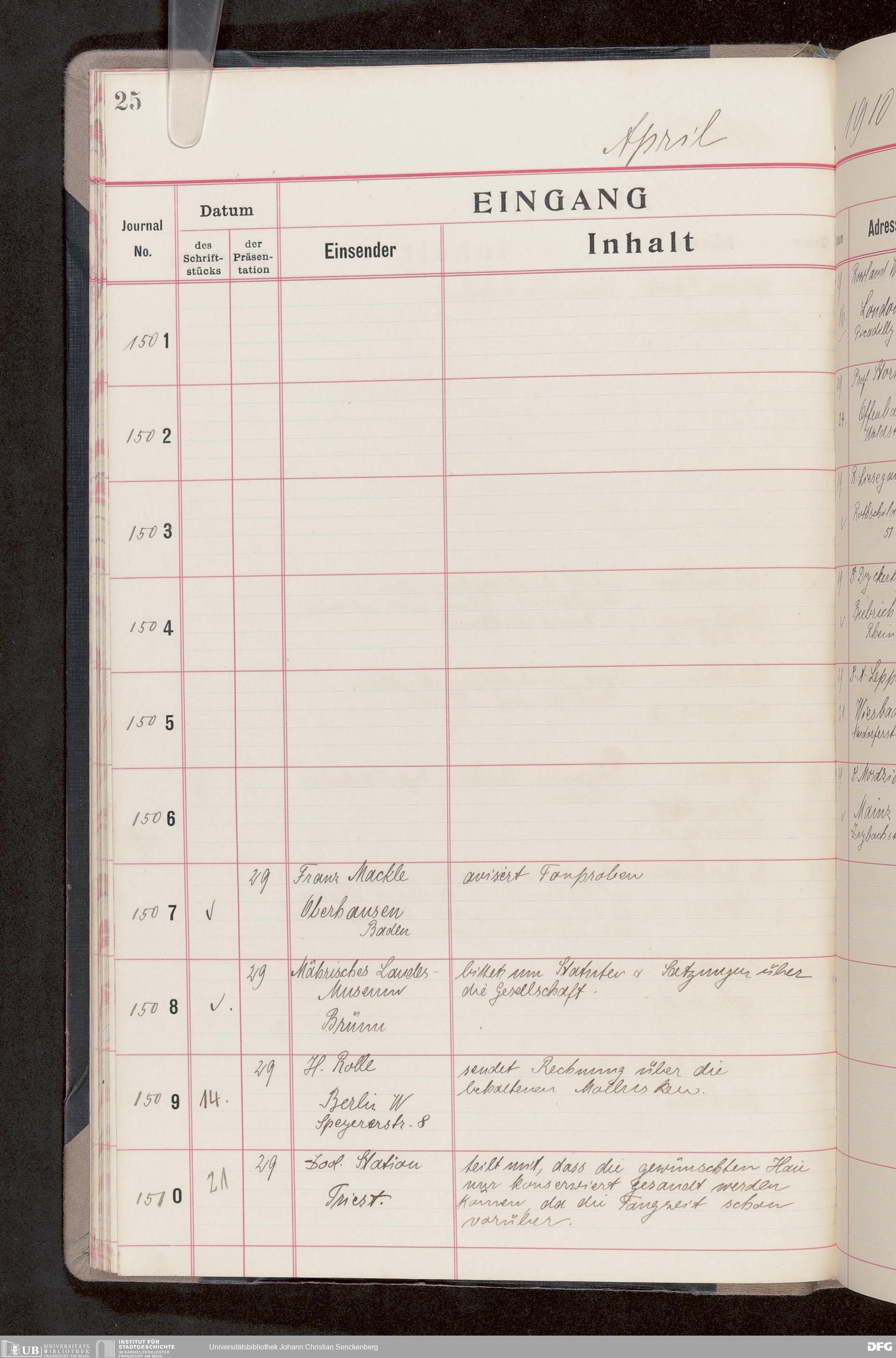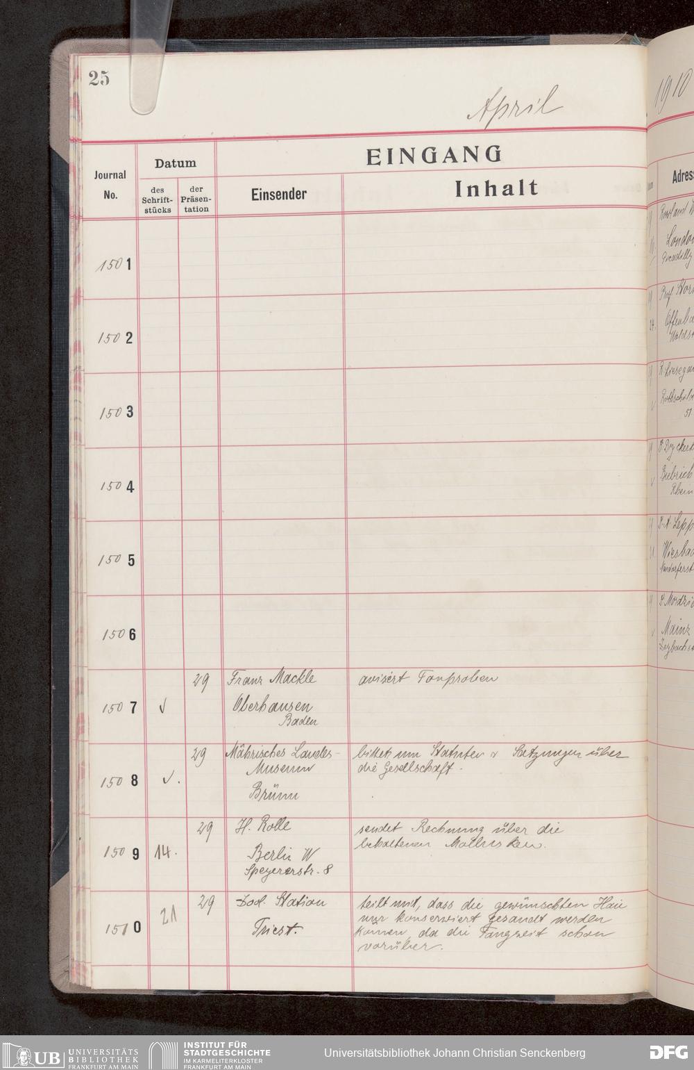 V176 Senckenberg Gesellschaft für Naturforschung, 682 - Journal der eingegangenen und ausgegangenen Briefe