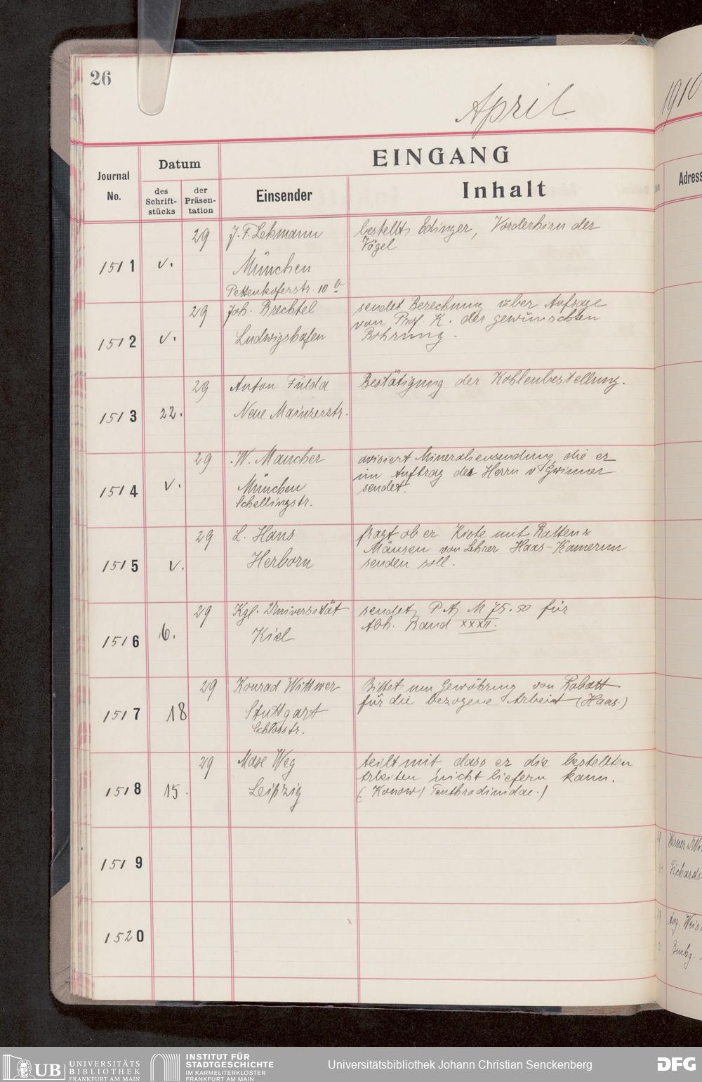 V176 Senckenberg Gesellschaft für Naturforschung, 682 - Journal der eingegangenen und ausgegangenen Briefe