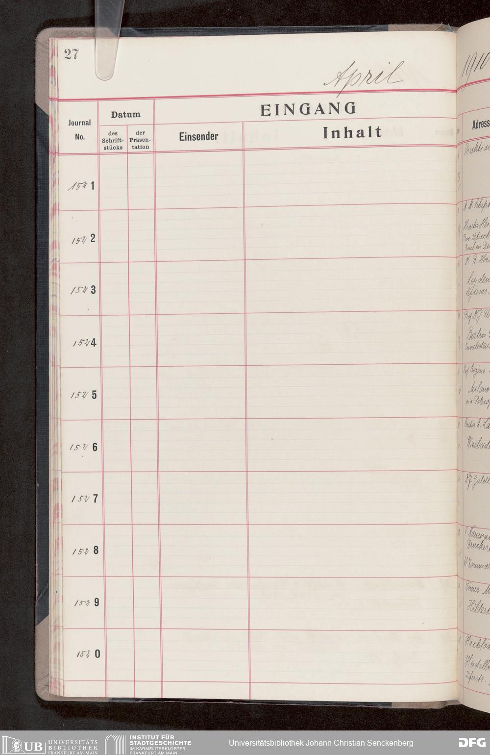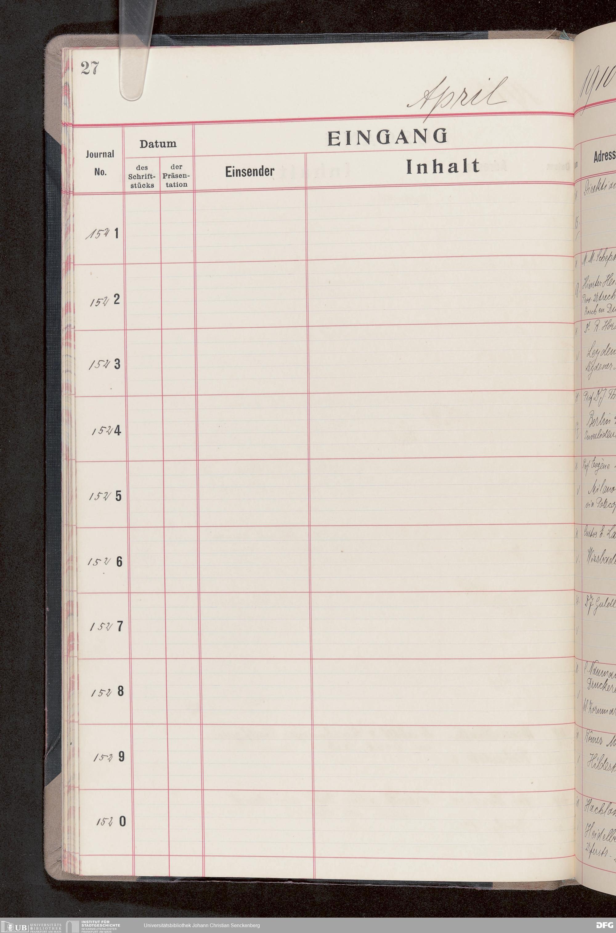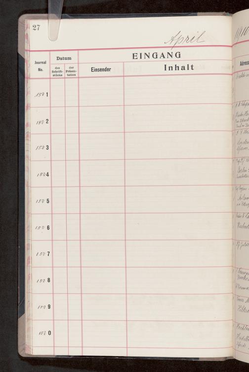 V176 Senckenberg Gesellschaft für Naturforschung, 682 - Journal der eingegangenen und ausgegangenen Briefe