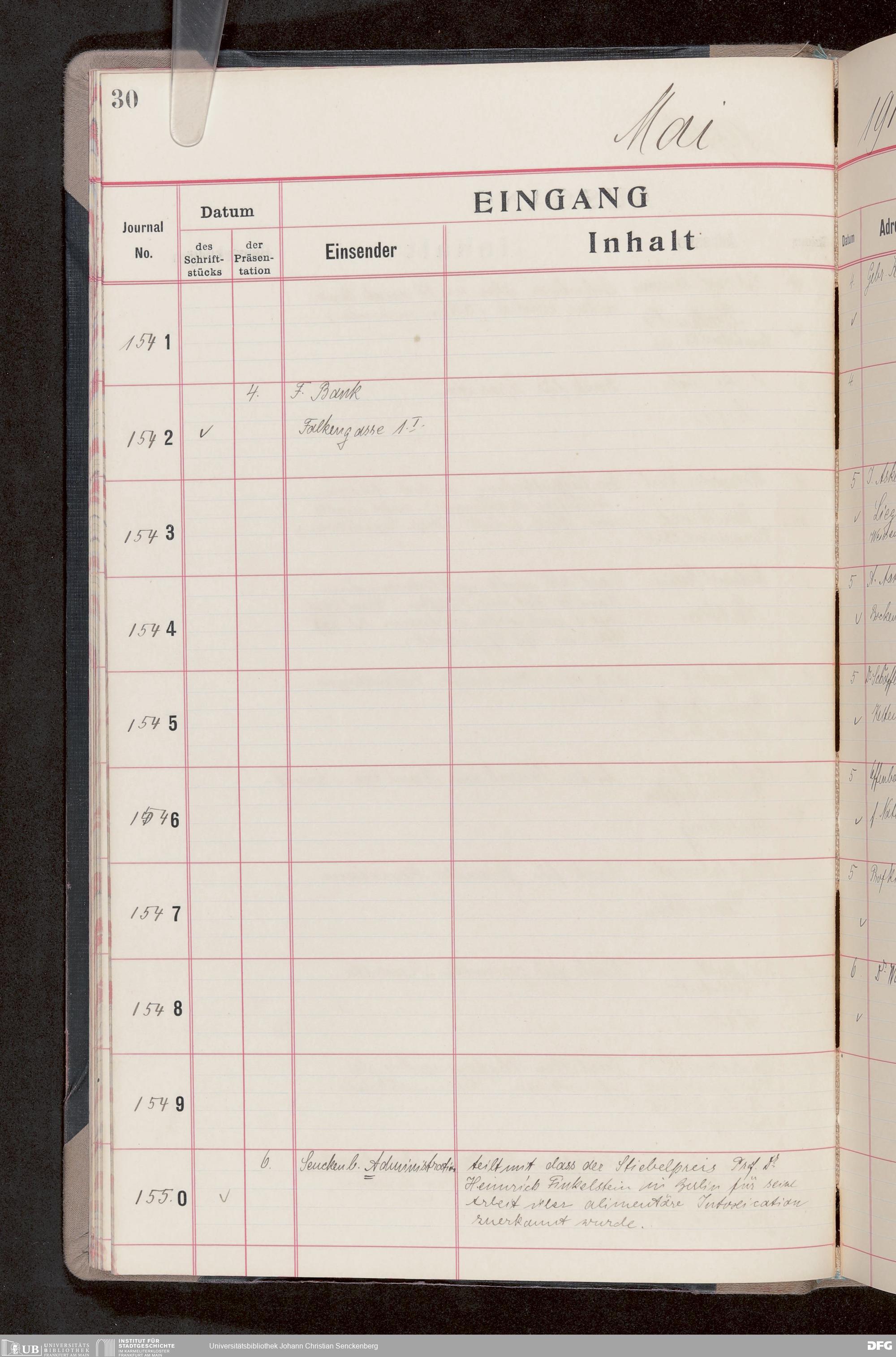 V176 Senckenberg Gesellschaft für Naturforschung, 682 - Journal der eingegangenen und ausgegangenen Briefe
