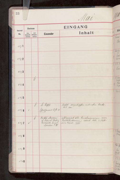 V176 Senckenberg Gesellschaft für Naturforschung, 682 - Journal der eingegangenen und ausgegangenen Briefe
