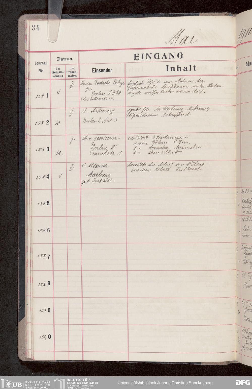 V176 Senckenberg Gesellschaft für Naturforschung, 682 - Journal der eingegangenen und ausgegangenen Briefe
