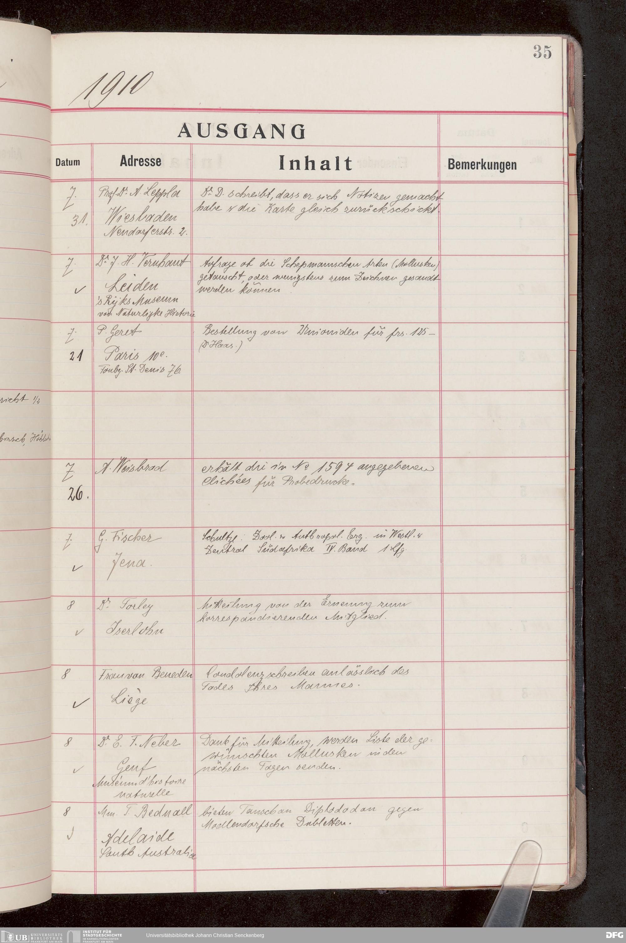V176 Senckenberg Gesellschaft für Naturforschung, 682 - Journal der eingegangenen und ausgegangenen Briefe