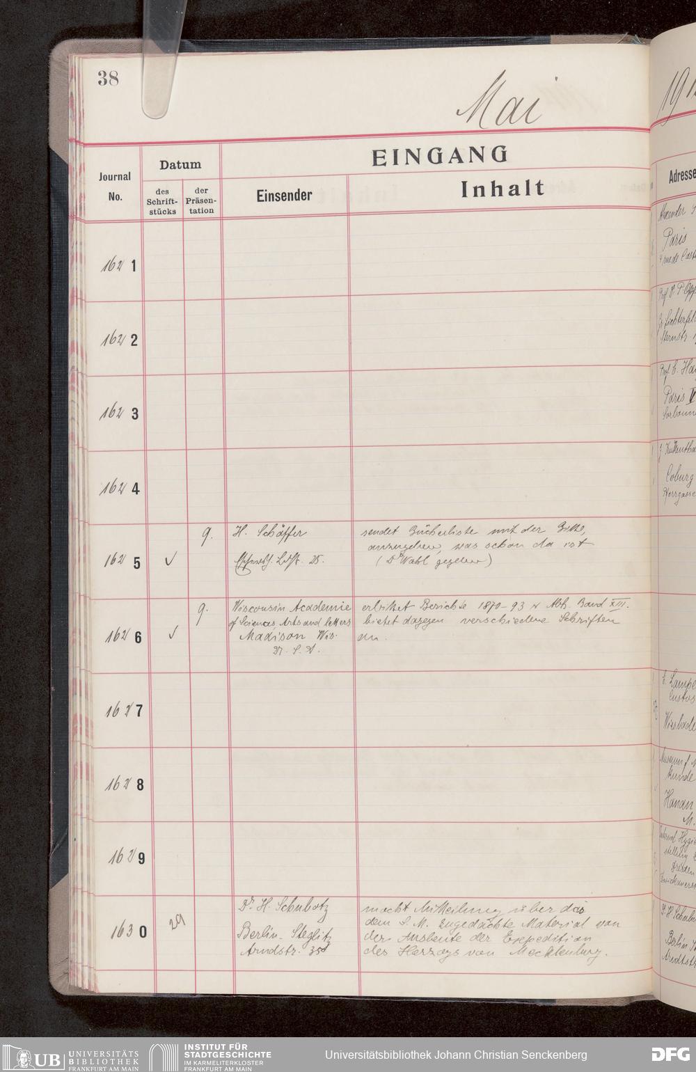V176 Senckenberg Gesellschaft für Naturforschung, 682 - Journal der eingegangenen und ausgegangenen Briefe