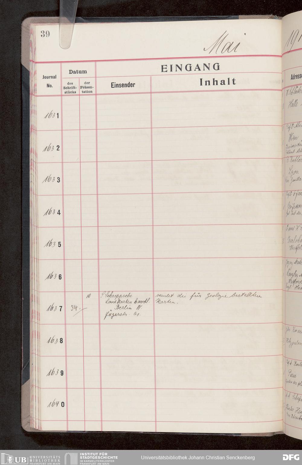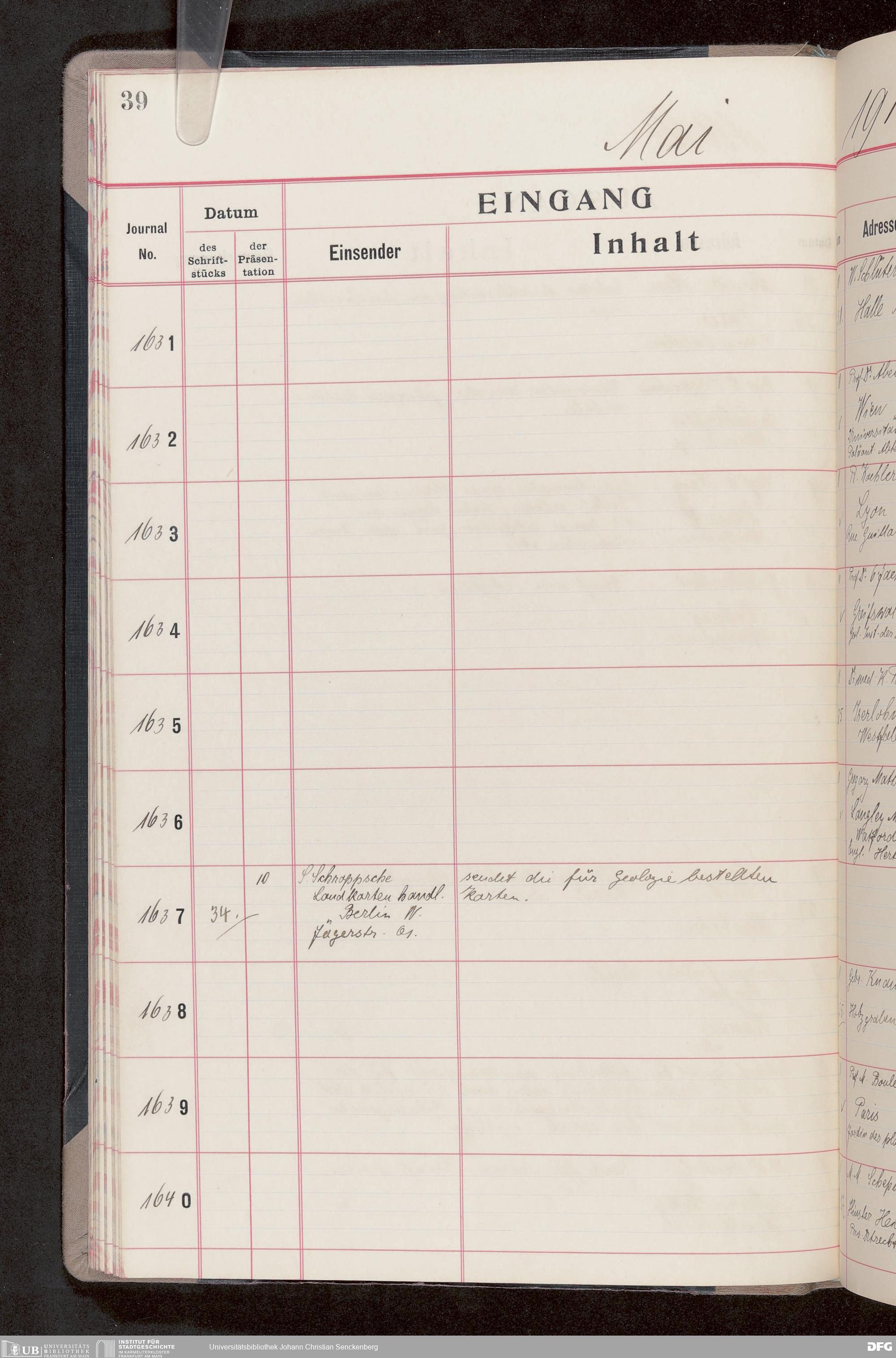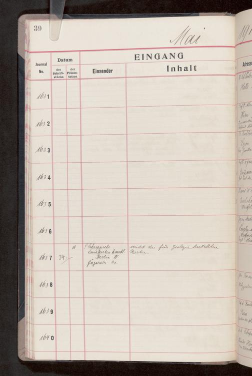 V176 Senckenberg Gesellschaft für Naturforschung, 682 - Journal der eingegangenen und ausgegangenen Briefe