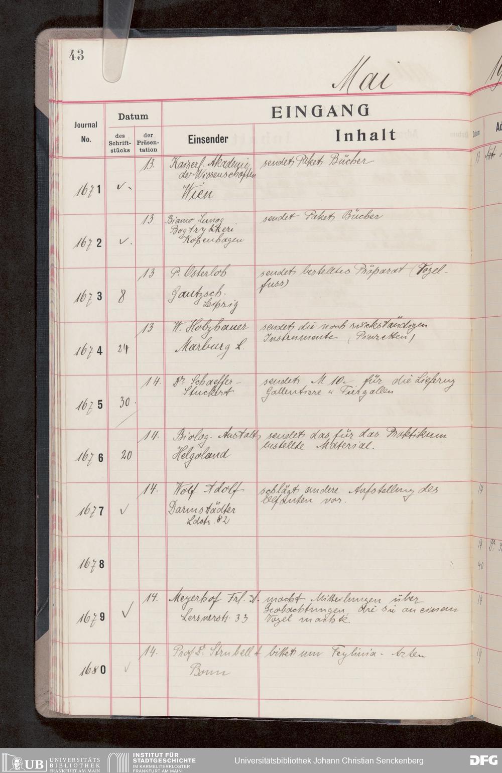 V176 Senckenberg Gesellschaft für Naturforschung, 682 - Journal der eingegangenen und ausgegangenen Briefe