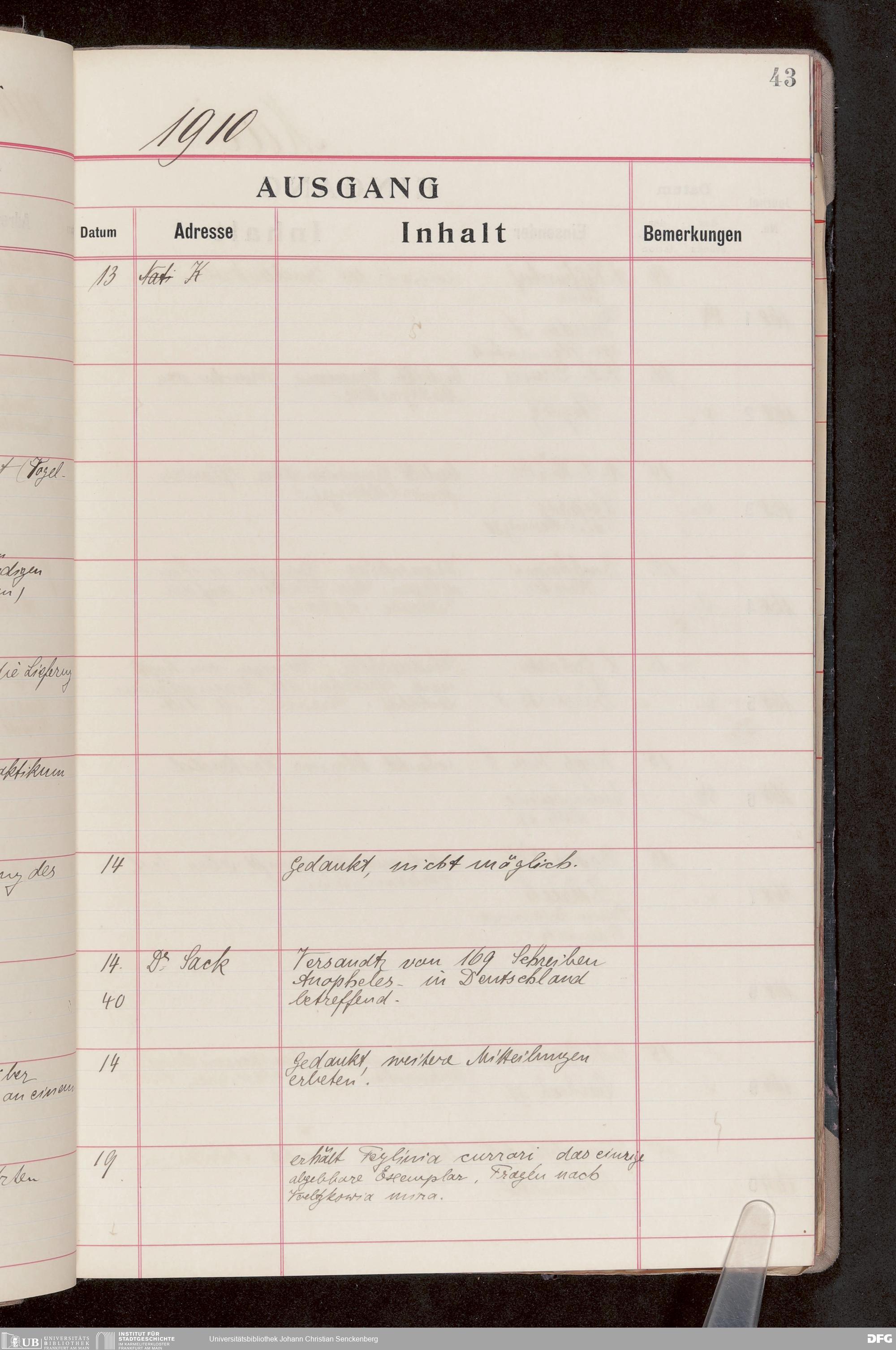V176 Senckenberg Gesellschaft für Naturforschung, 682 - Journal der eingegangenen und ausgegangenen Briefe