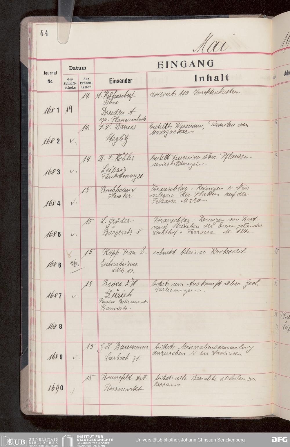 V176 Senckenberg Gesellschaft für Naturforschung, 682 - Journal der eingegangenen und ausgegangenen Briefe