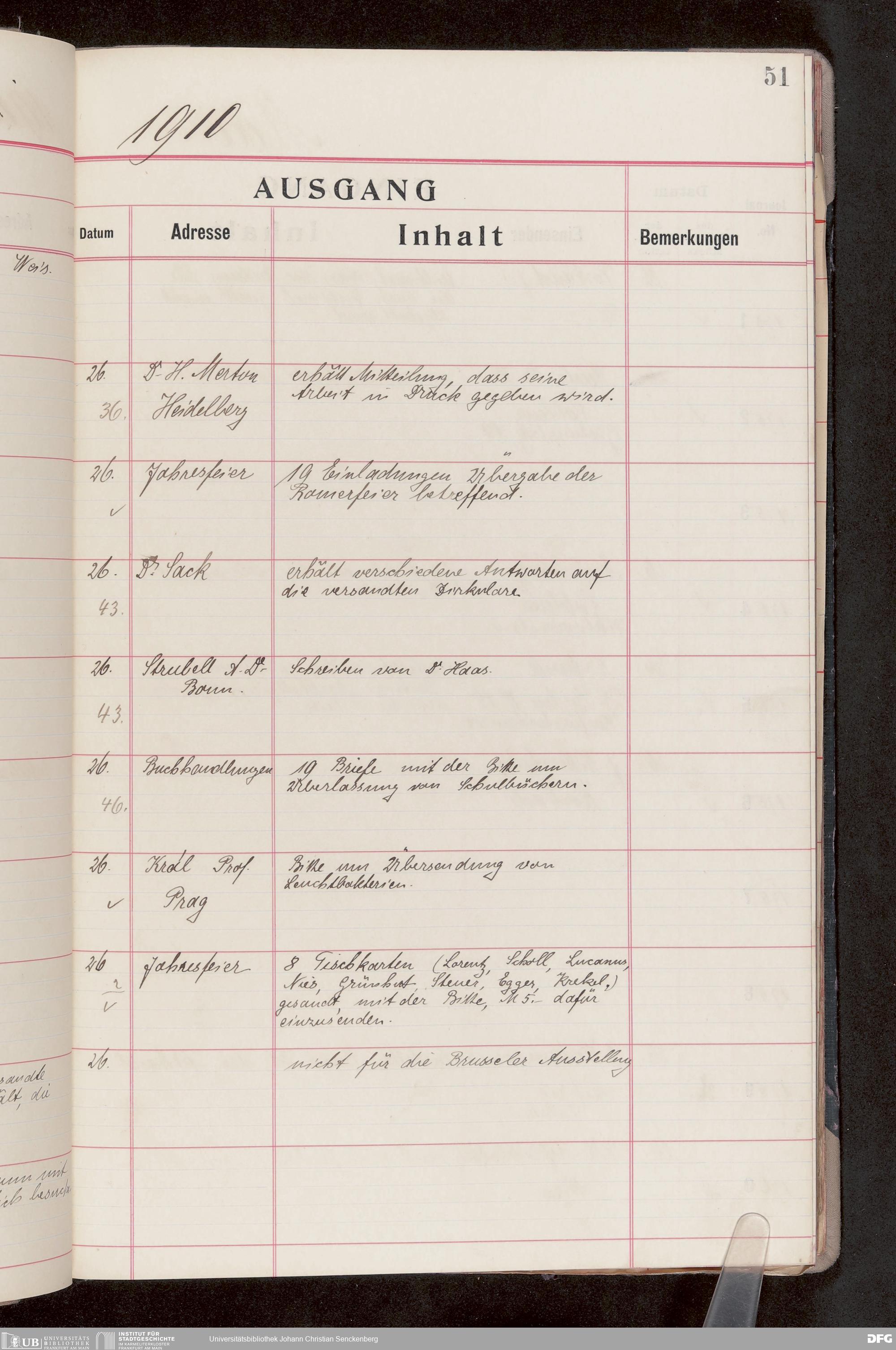 V176 Senckenberg Gesellschaft für Naturforschung, 682 - Journal der eingegangenen und ausgegangenen Briefe