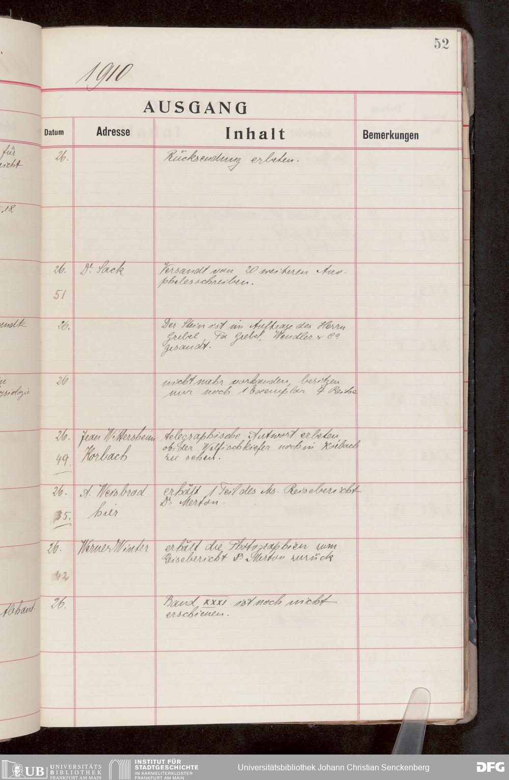 V176 Senckenberg Gesellschaft für Naturforschung, 682 - Journal der eingegangenen und ausgegangenen Briefe