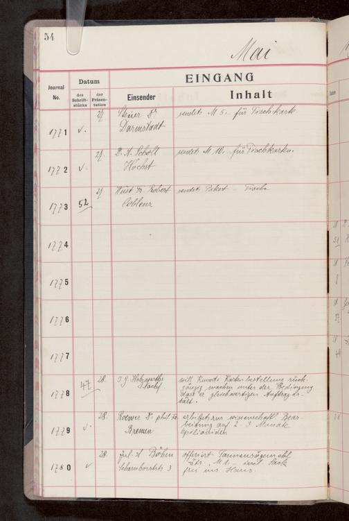 V176 Senckenberg Gesellschaft für Naturforschung, 682 - Journal der eingegangenen und ausgegangenen Briefe
