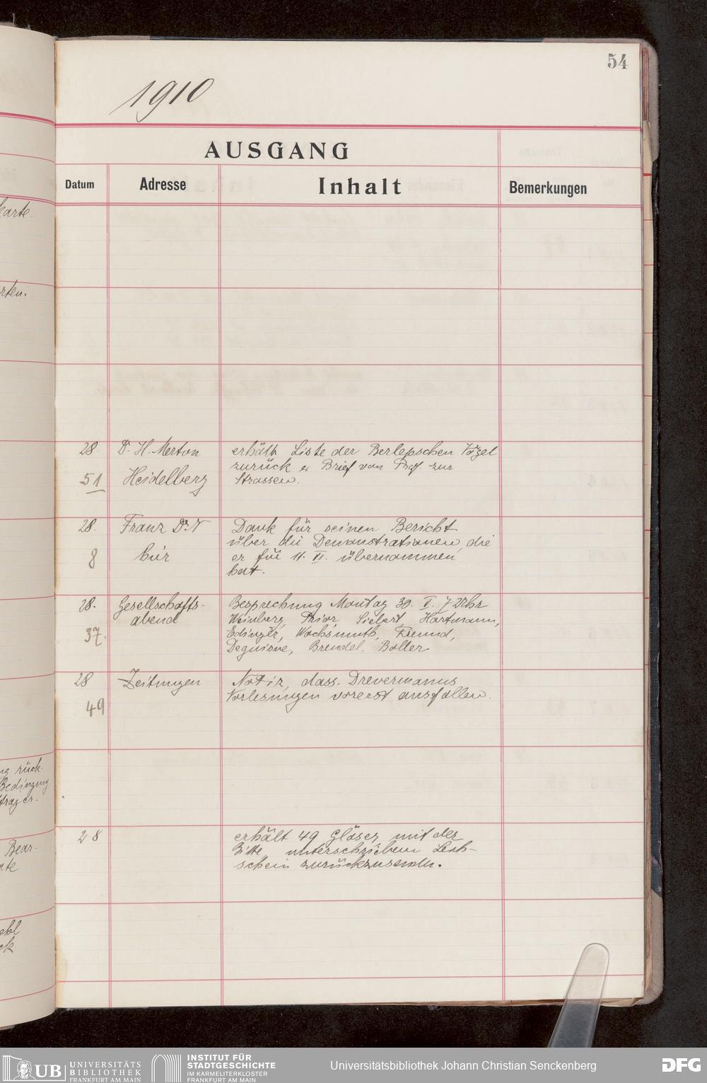 V176 Senckenberg Gesellschaft für Naturforschung, 682 - Journal der eingegangenen und ausgegangenen Briefe