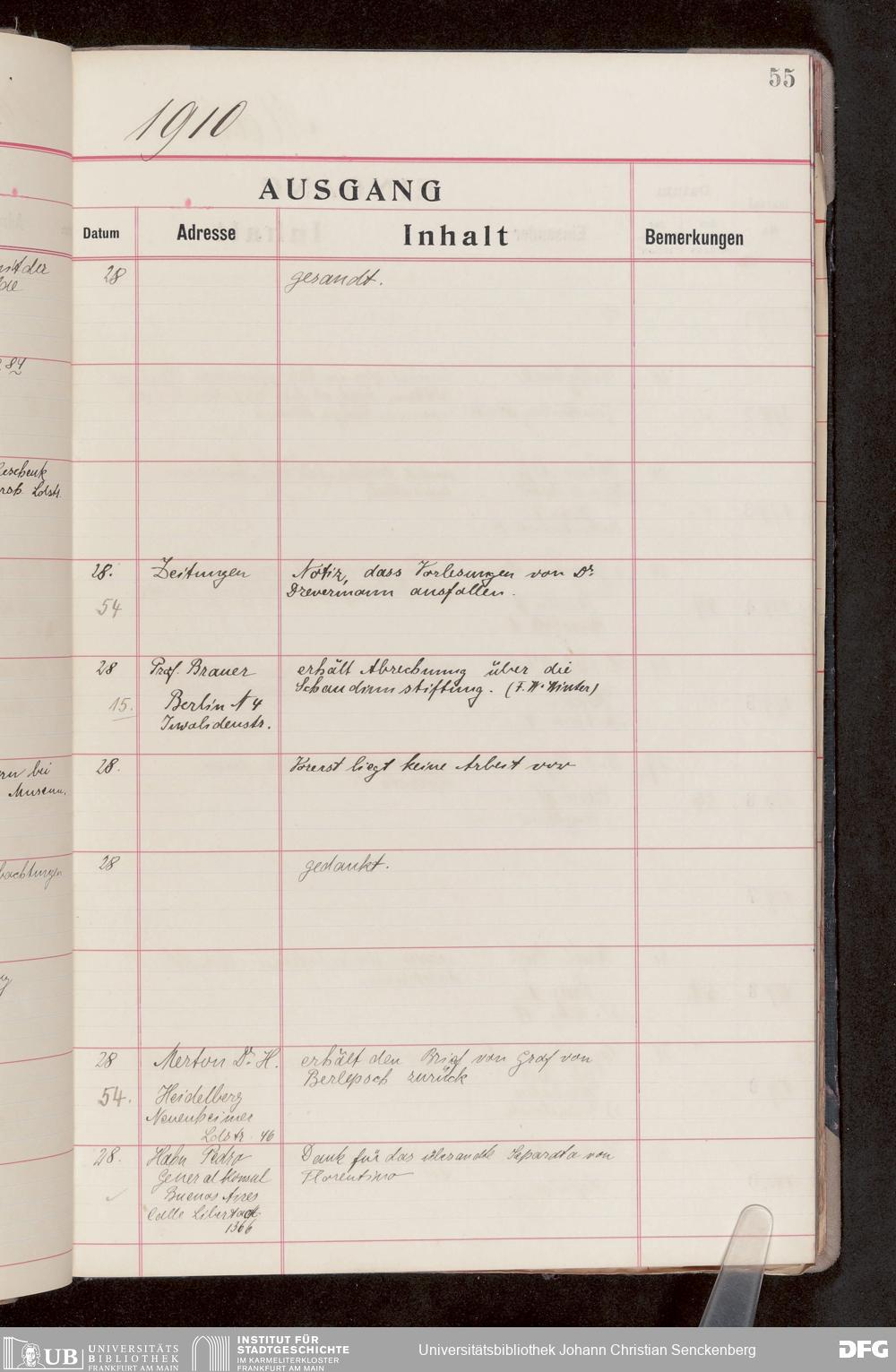 V176 Senckenberg Gesellschaft für Naturforschung, 682 - Journal der eingegangenen und ausgegangenen Briefe