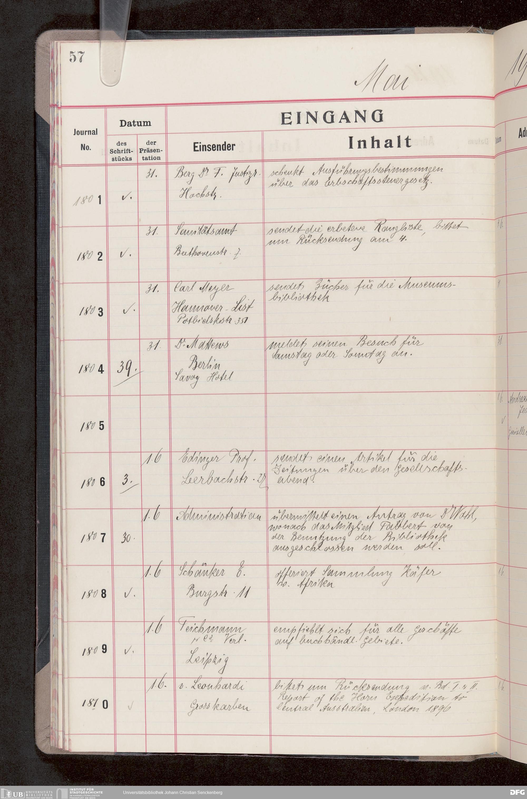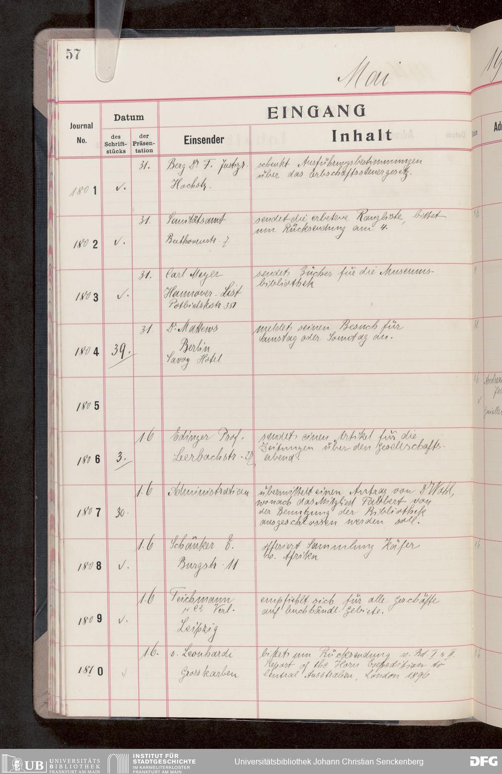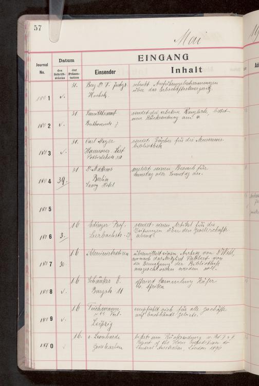 V176 Senckenberg Gesellschaft für Naturforschung, 682 - Journal der eingegangenen und ausgegangenen Briefe