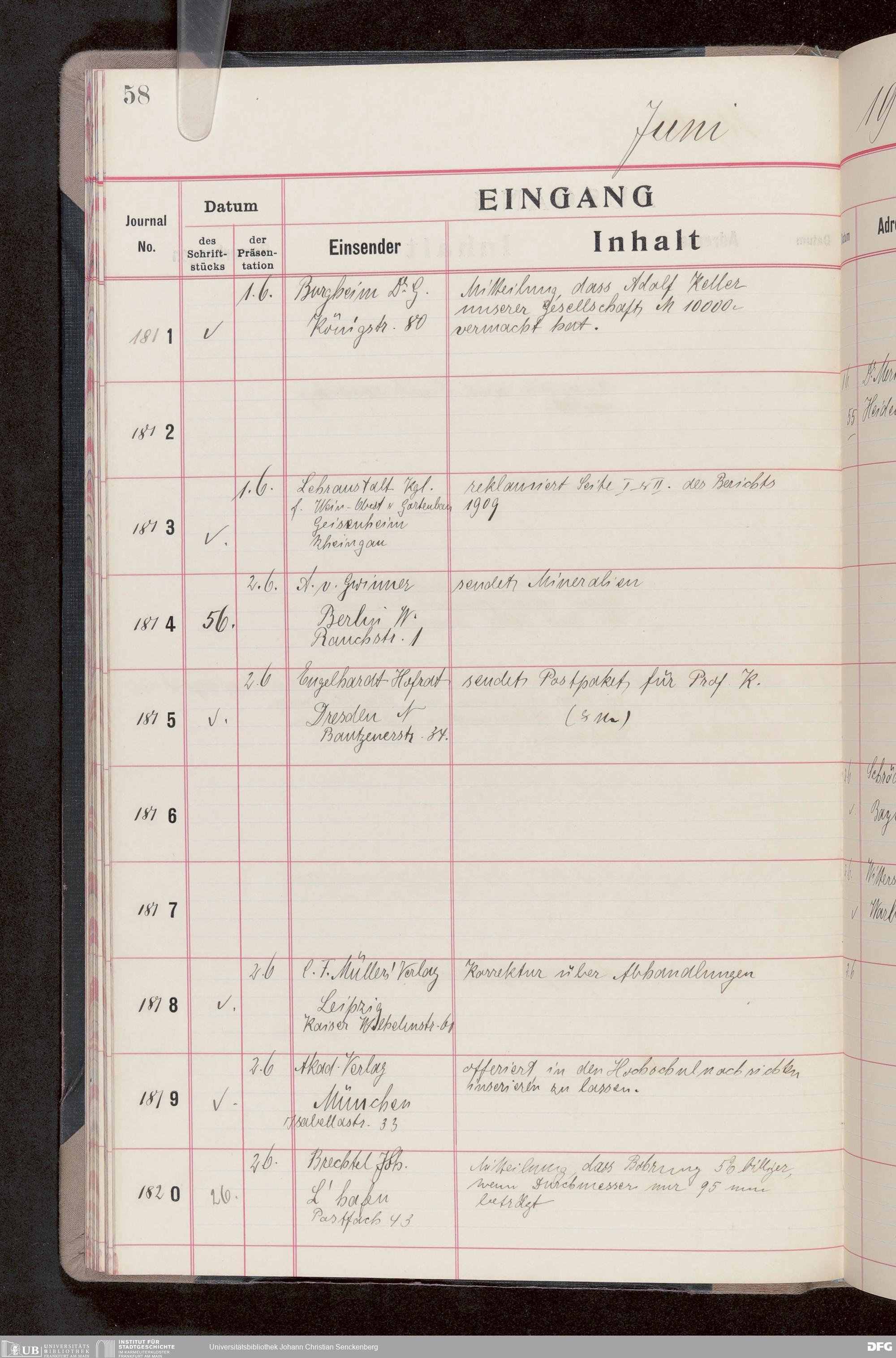 V176 Senckenberg Gesellschaft für Naturforschung, 682 - Journal der eingegangenen und ausgegangenen Briefe
