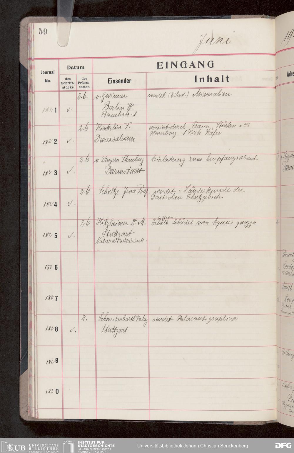 V176 Senckenberg Gesellschaft für Naturforschung, 682 - Journal der eingegangenen und ausgegangenen Briefe