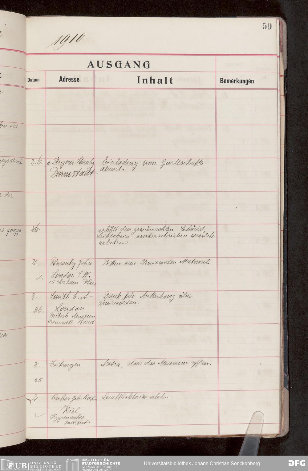V176 Senckenberg Gesellschaft für Naturforschung, 682 - Journal der eingegangenen und ausgegangenen Briefe
