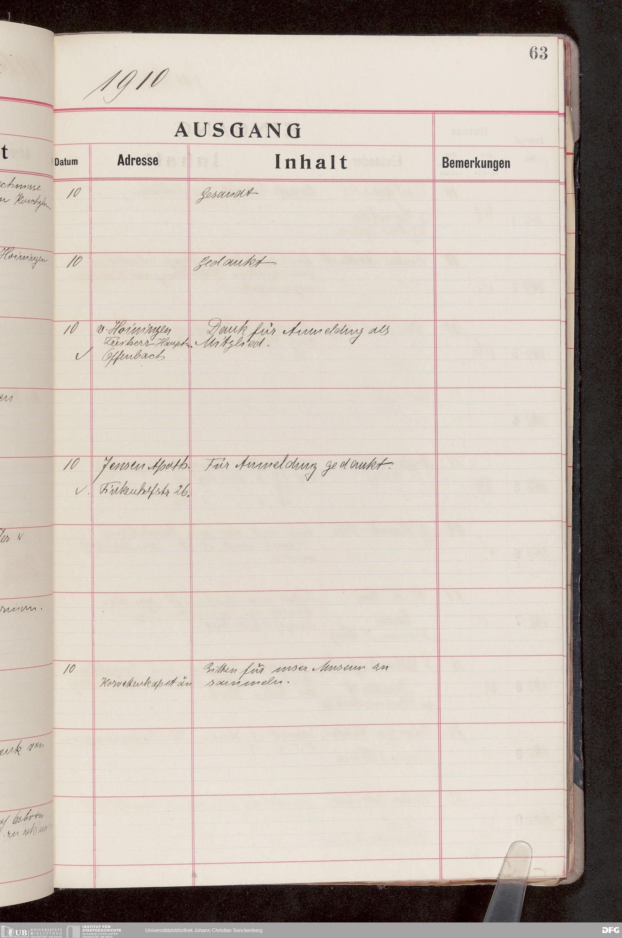 V176 Senckenberg Gesellschaft für Naturforschung, 682 - Journal der eingegangenen und ausgegangenen Briefe