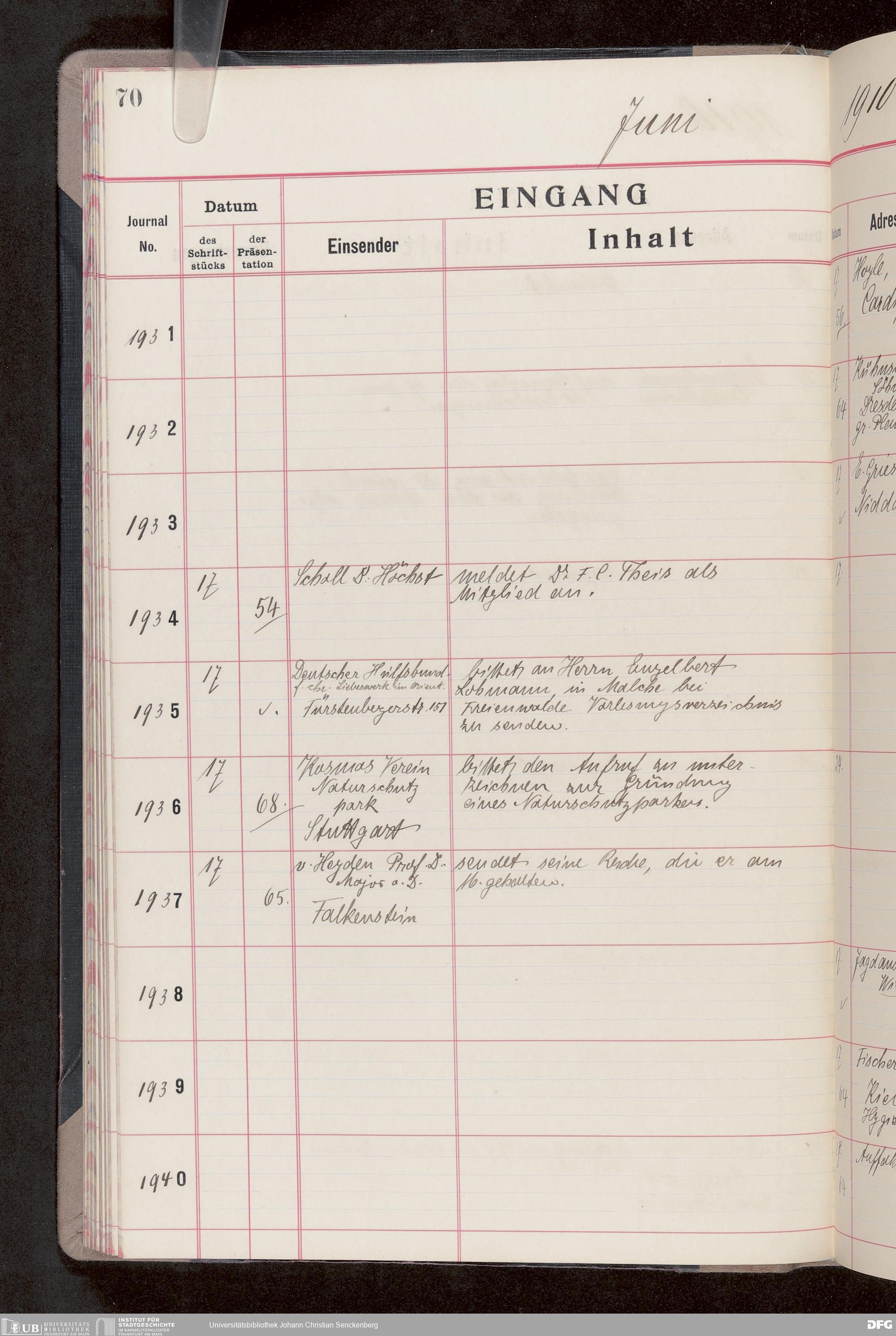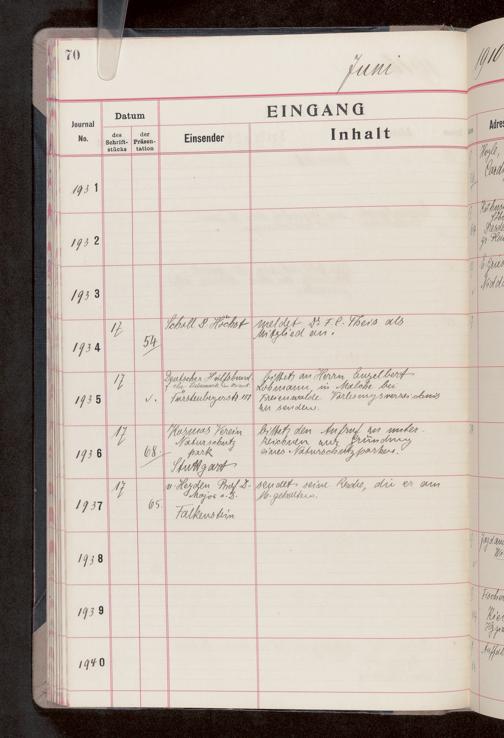 V176 Senckenberg Gesellschaft für Naturforschung, 682 - Journal der eingegangenen und ausgegangenen Briefe