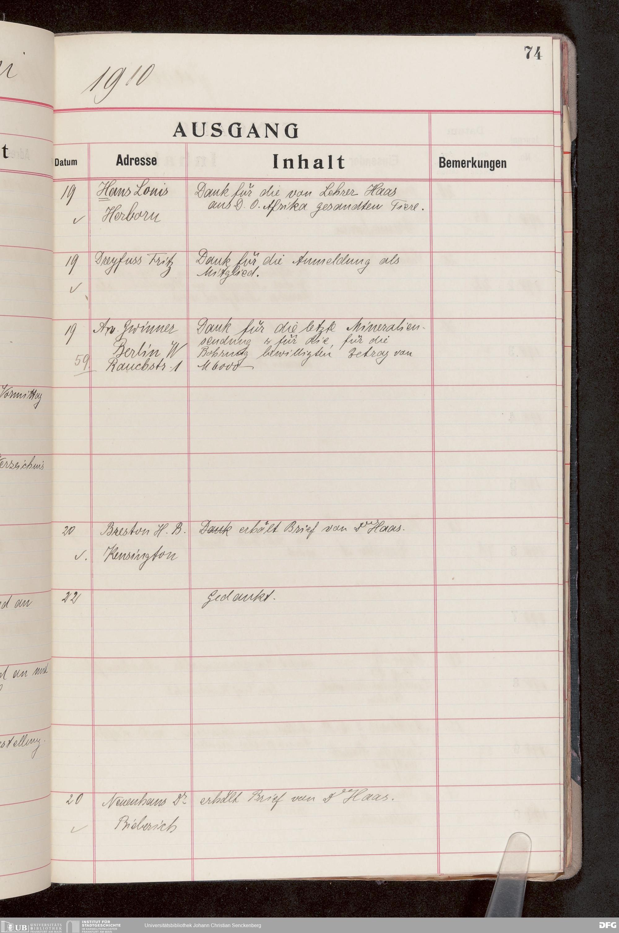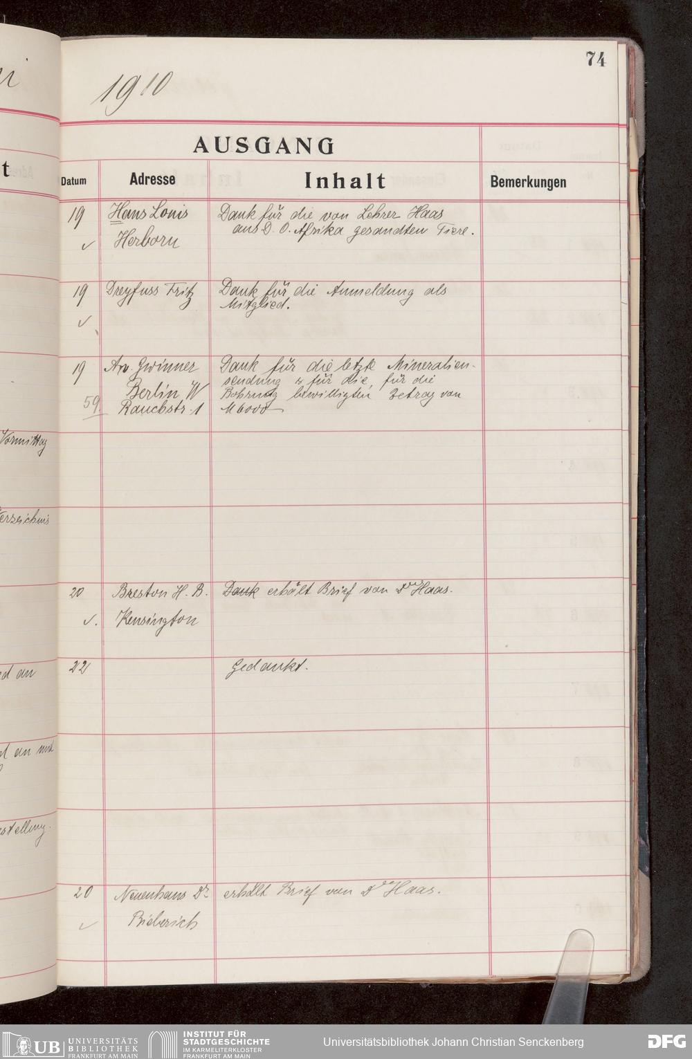 V176 Senckenberg Gesellschaft für Naturforschung, 682 - Journal der eingegangenen und ausgegangenen Briefe