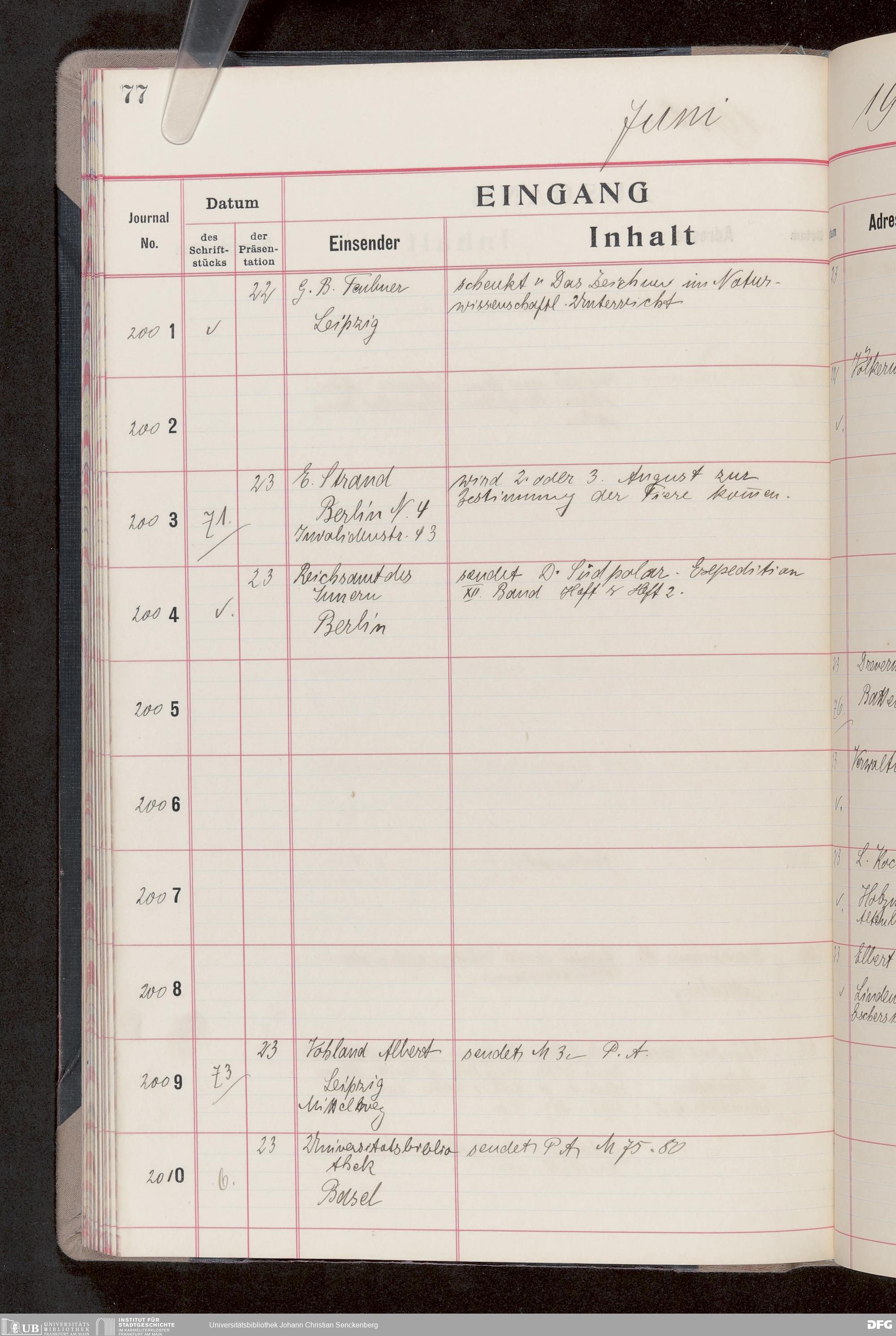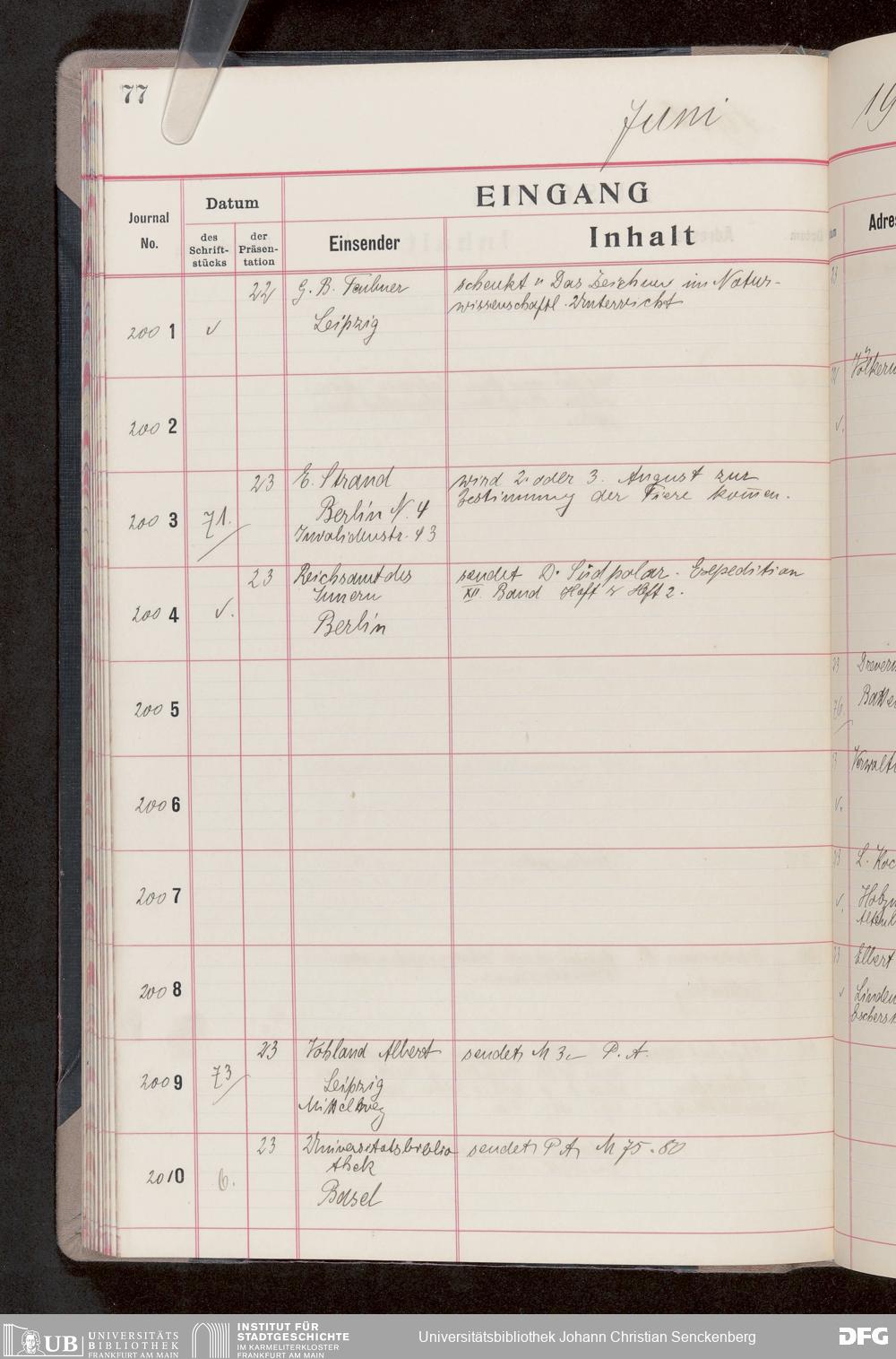 V176 Senckenberg Gesellschaft für Naturforschung, 682 - Journal der eingegangenen und ausgegangenen Briefe