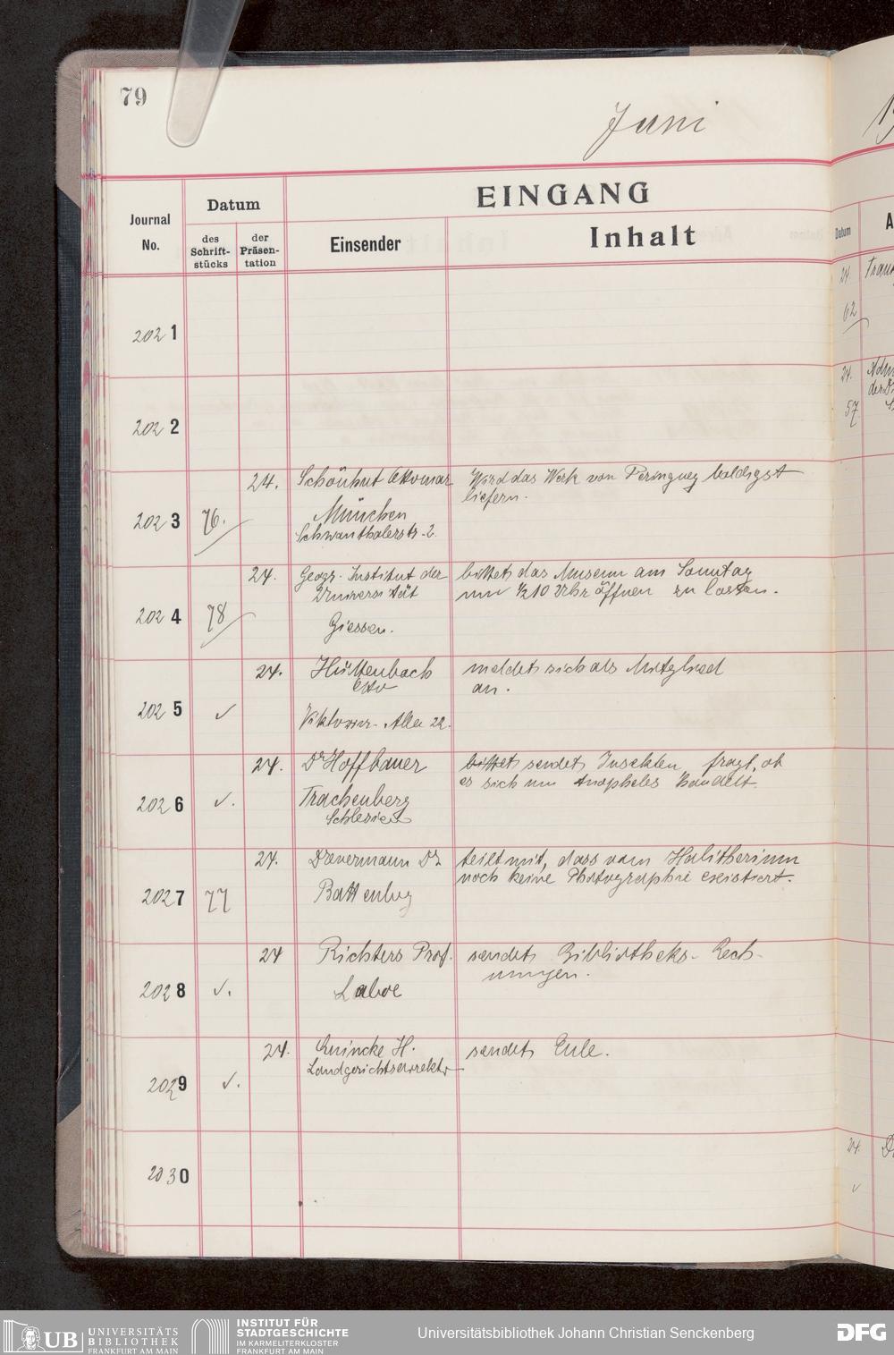 V176 Senckenberg Gesellschaft für Naturforschung, 682 - Journal der eingegangenen und ausgegangenen Briefe