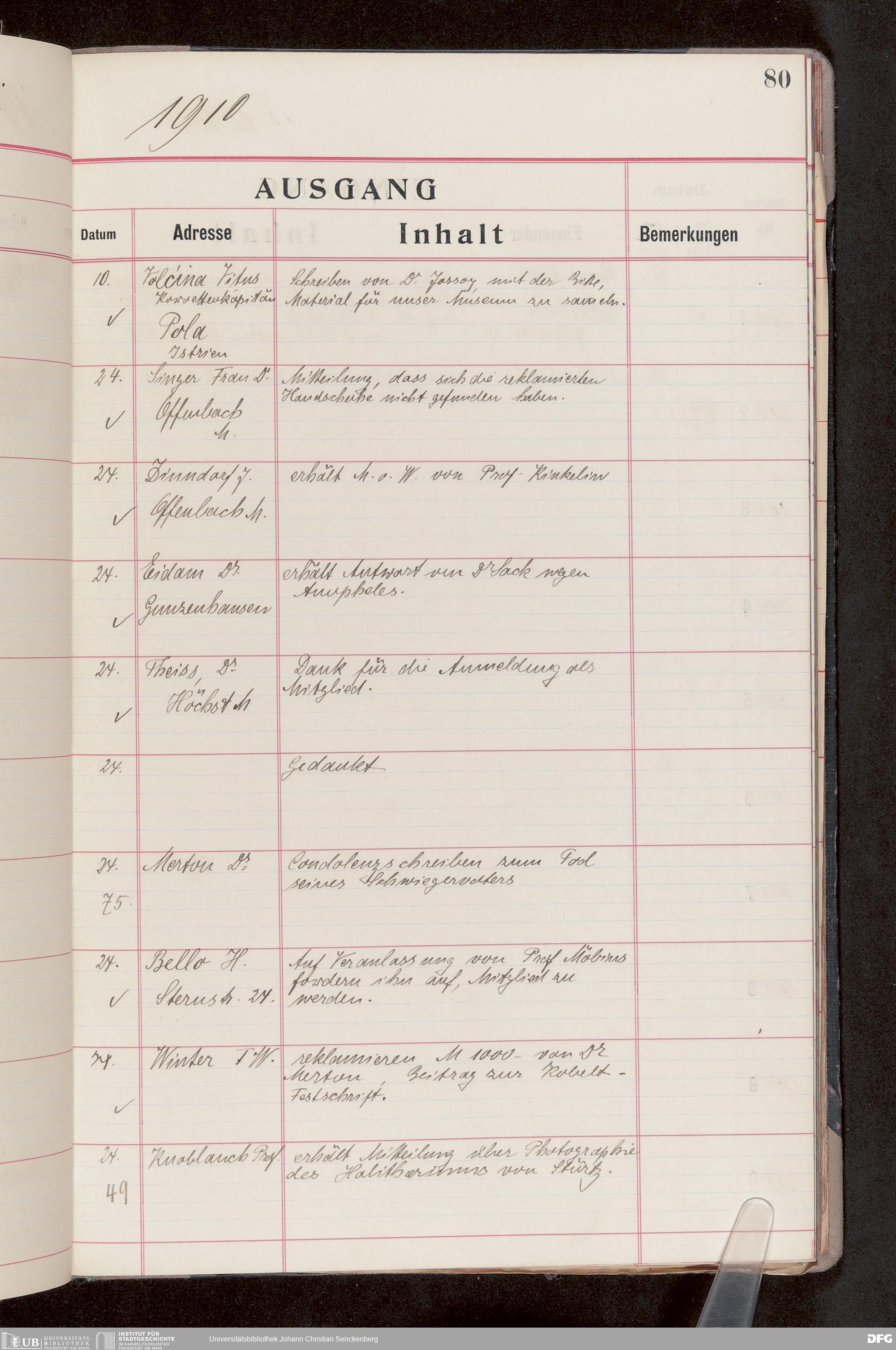 V176 Senckenberg Gesellschaft für Naturforschung, 682 - Journal der eingegangenen und ausgegangenen Briefe