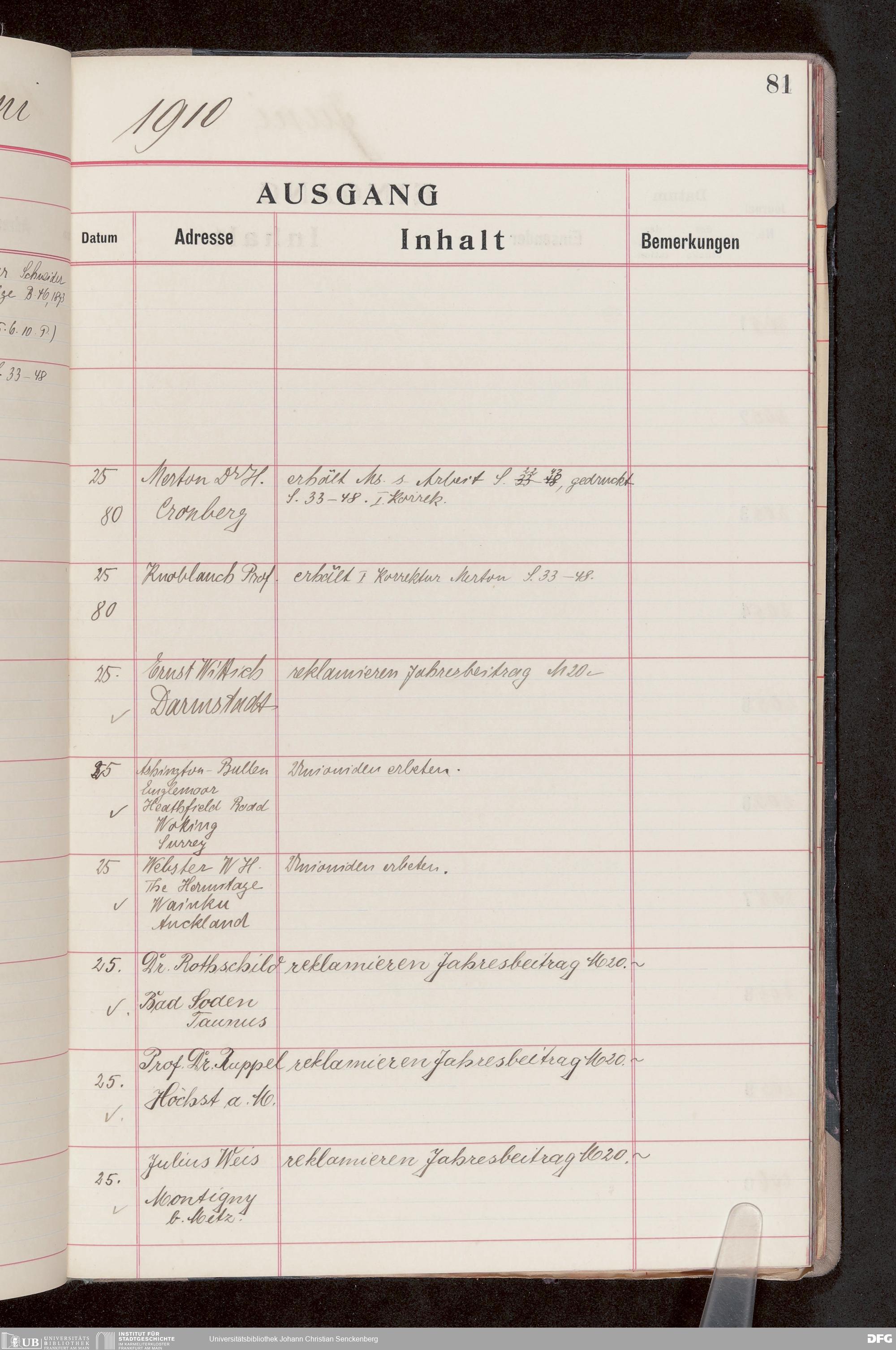 V176 Senckenberg Gesellschaft für Naturforschung, 682 - Journal der eingegangenen und ausgegangenen Briefe