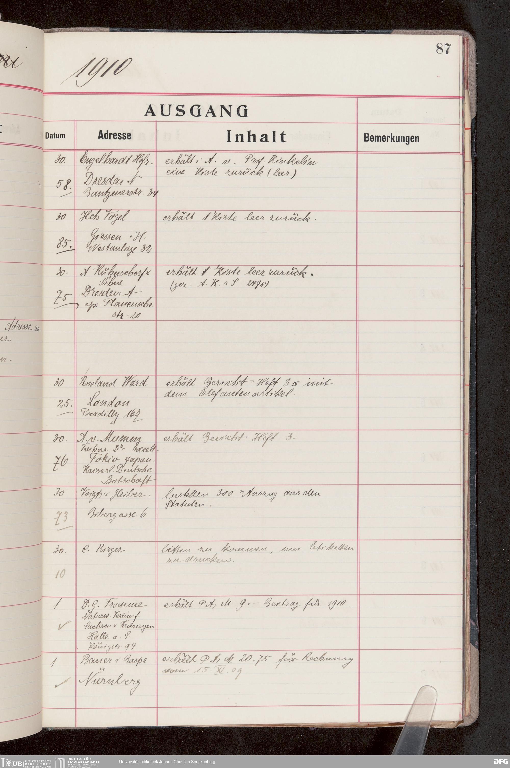 V176 Senckenberg Gesellschaft für Naturforschung, 682 - Journal der eingegangenen und ausgegangenen Briefe