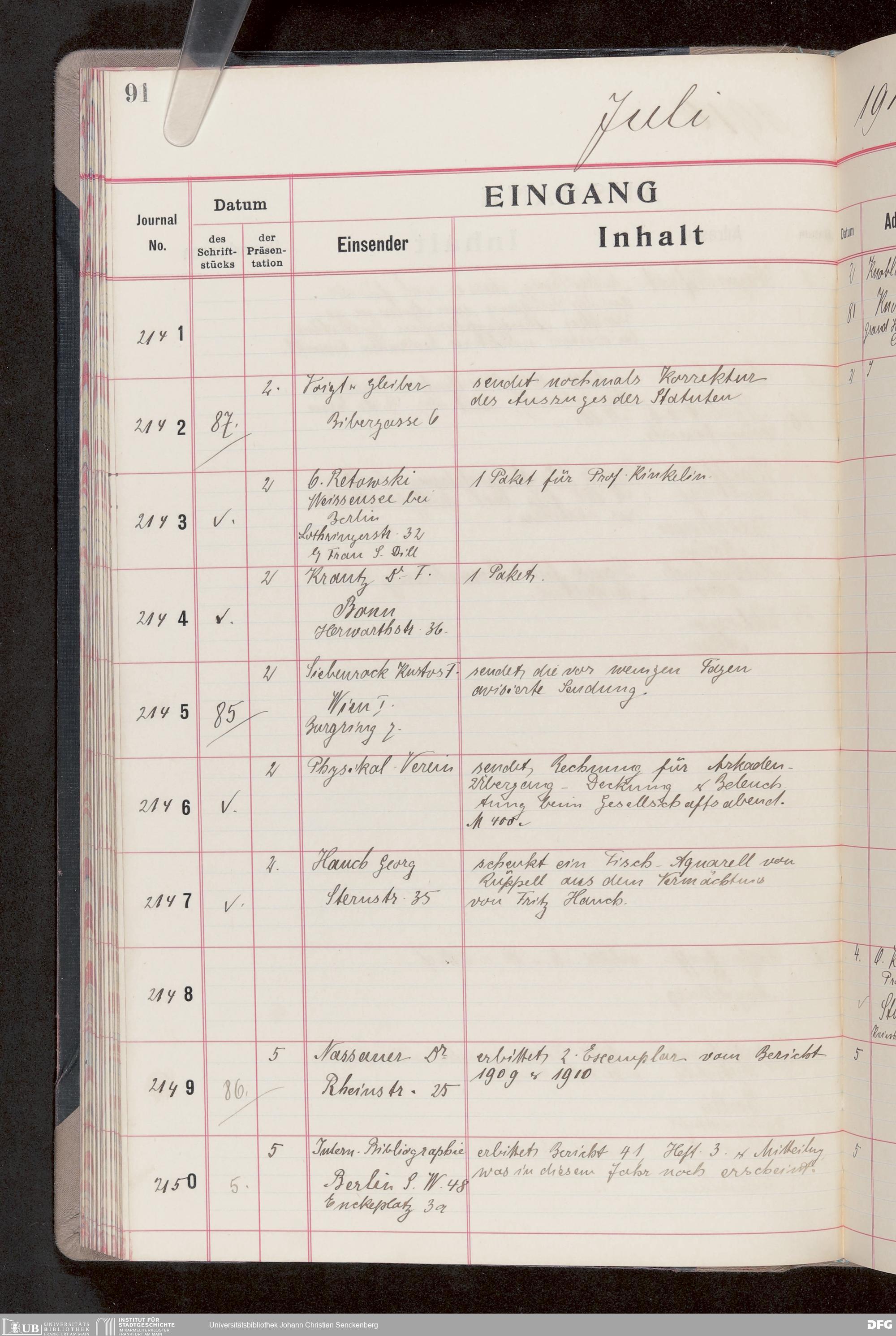 V176 Senckenberg Gesellschaft für Naturforschung, 682 - Journal der eingegangenen und ausgegangenen Briefe