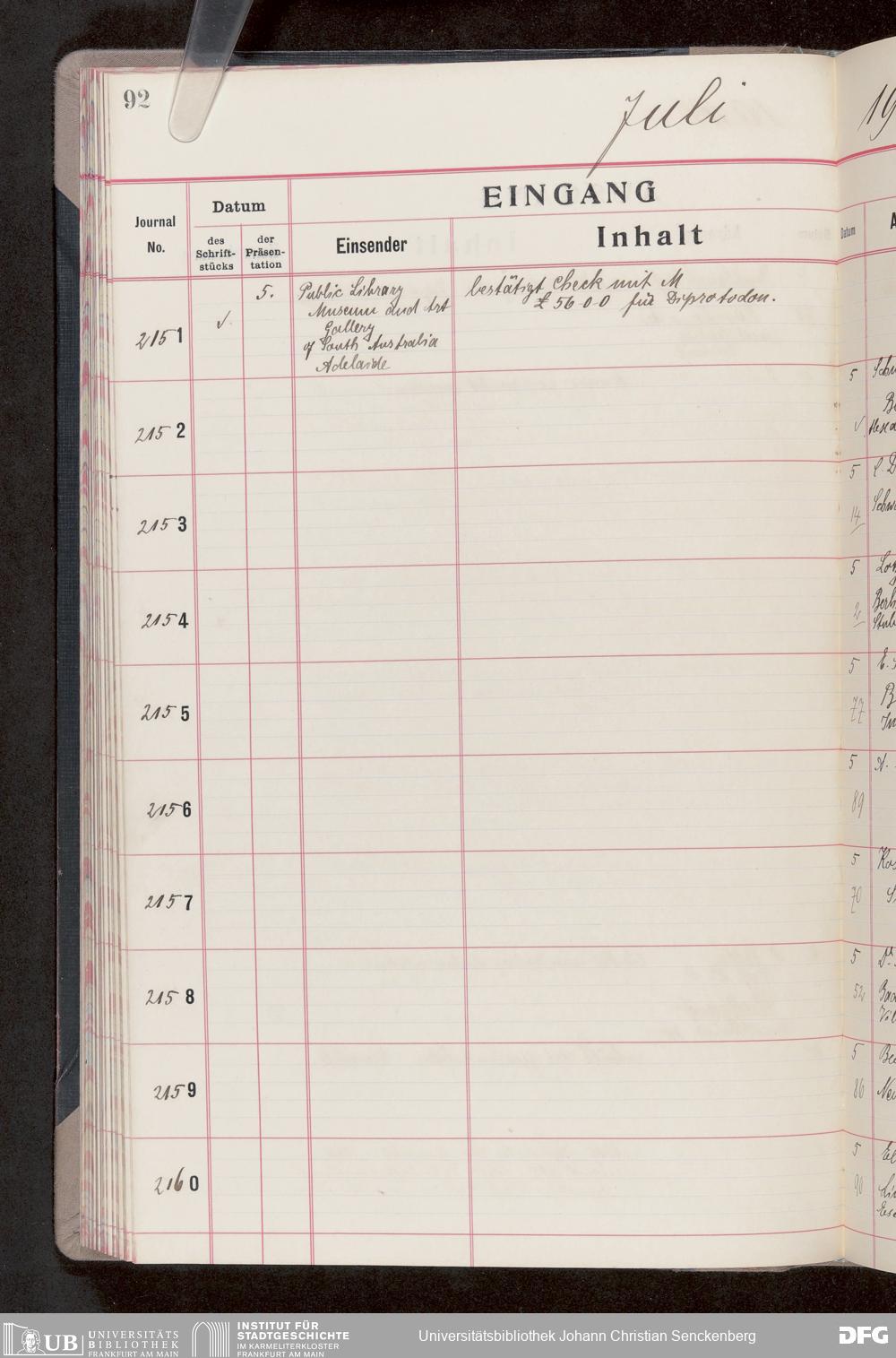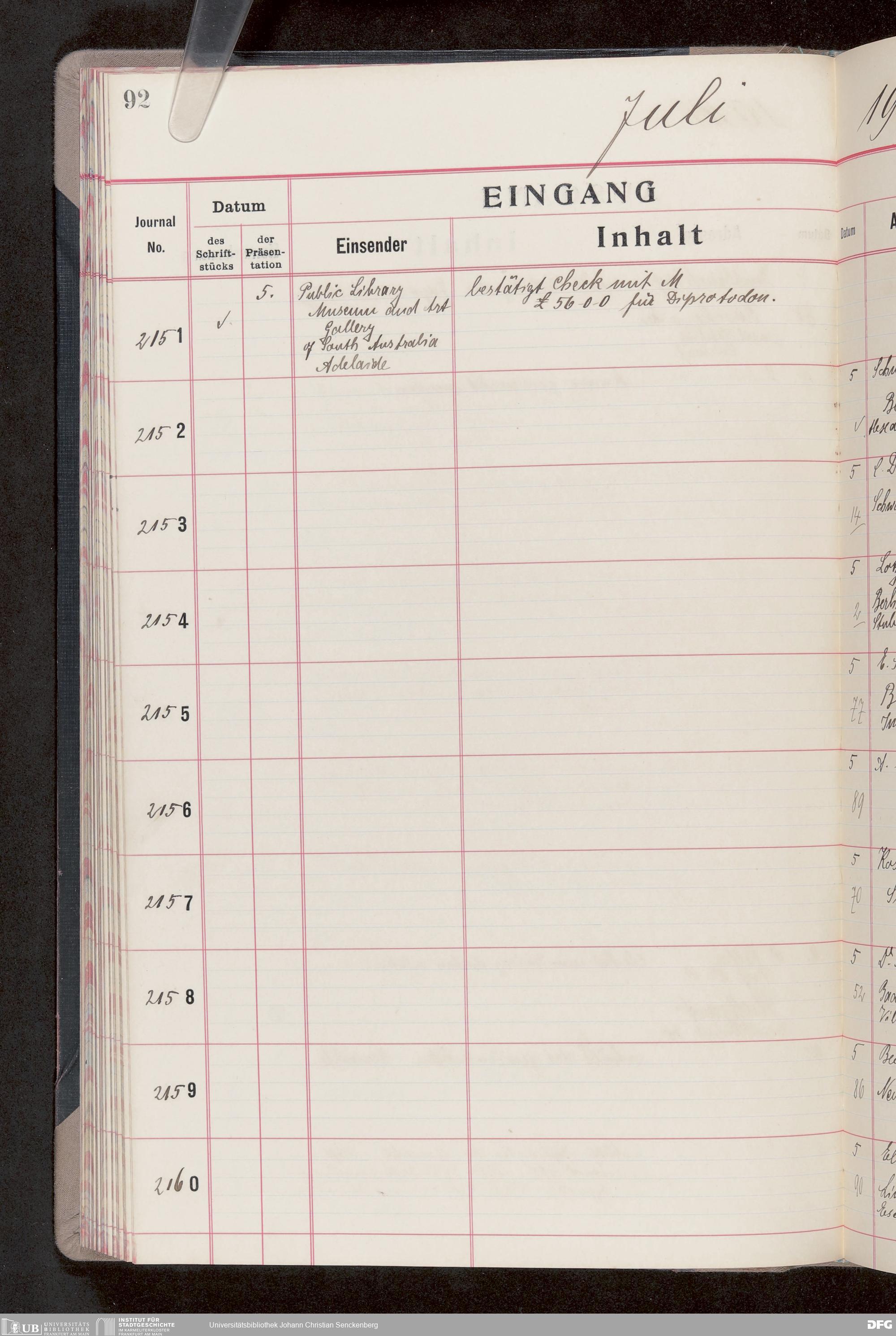V176 Senckenberg Gesellschaft für Naturforschung, 682 - Journal der eingegangenen und ausgegangenen Briefe