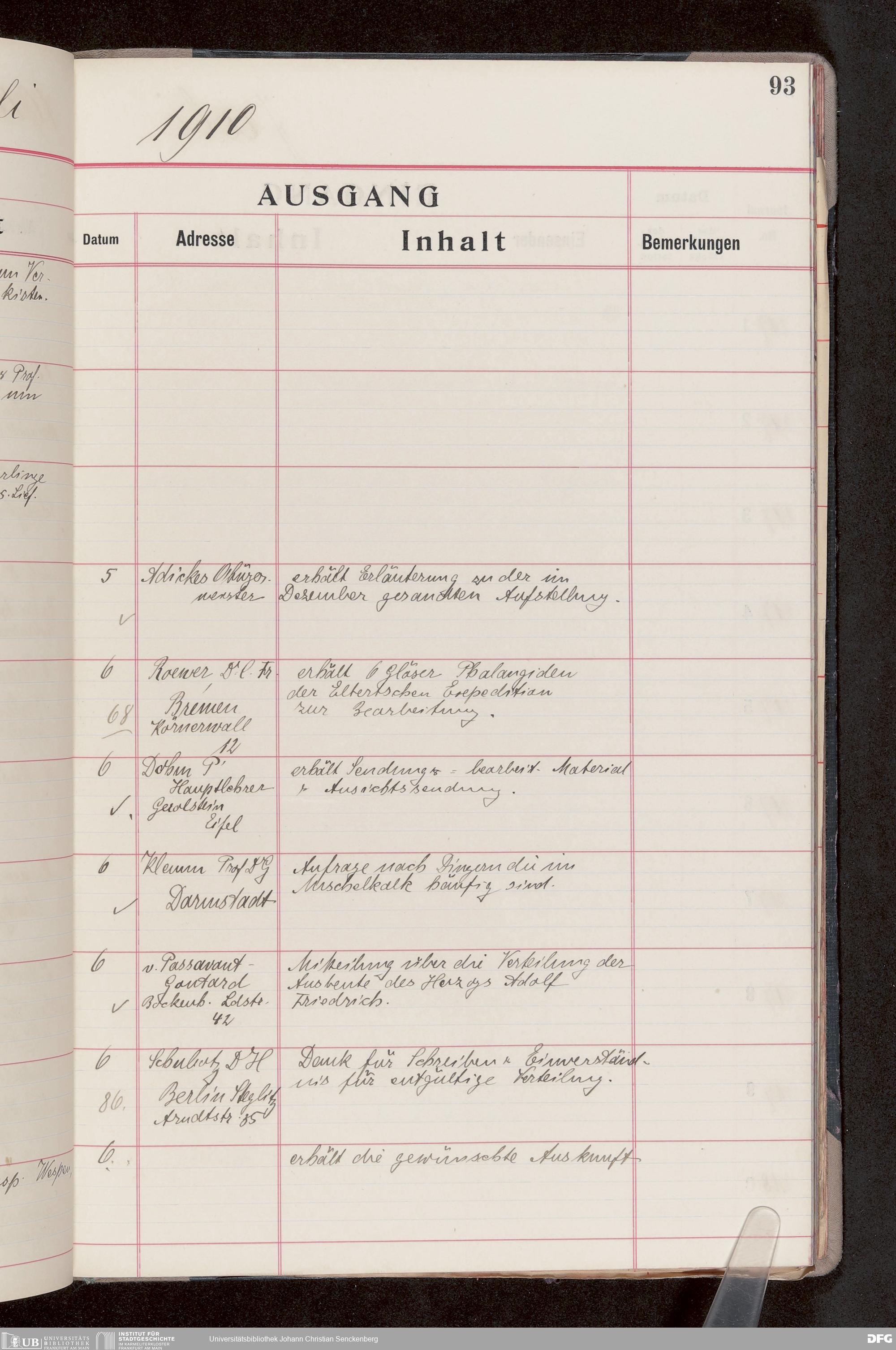 V176 Senckenberg Gesellschaft für Naturforschung, 682 - Journal der eingegangenen und ausgegangenen Briefe