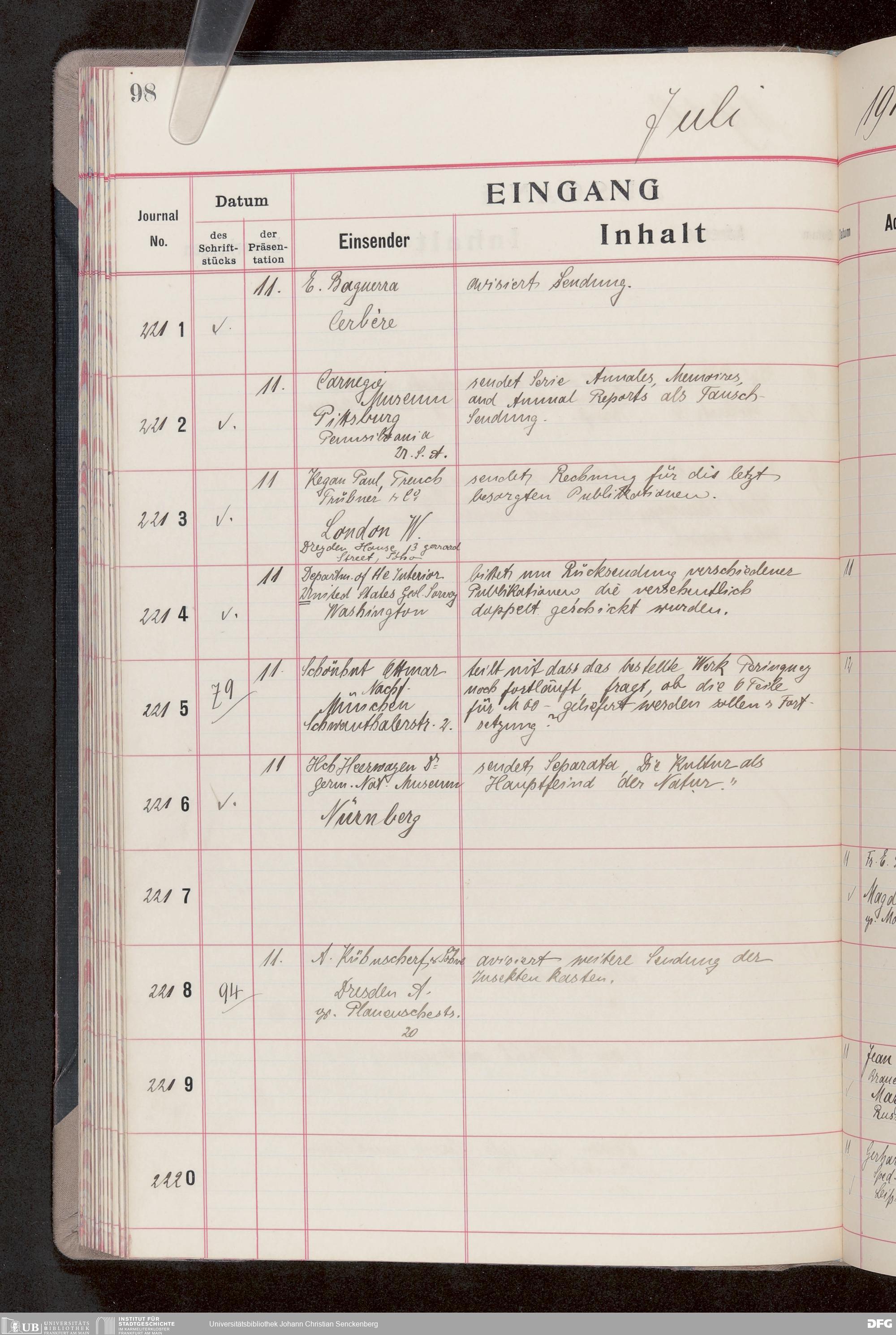 V176 Senckenberg Gesellschaft für Naturforschung, 682 - Journal der eingegangenen und ausgegangenen Briefe