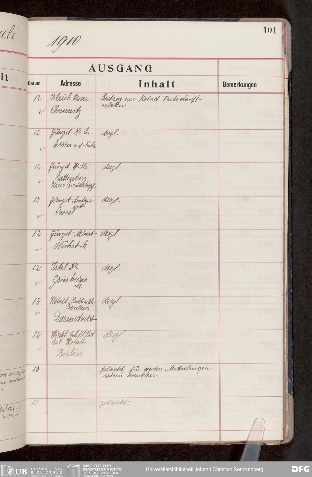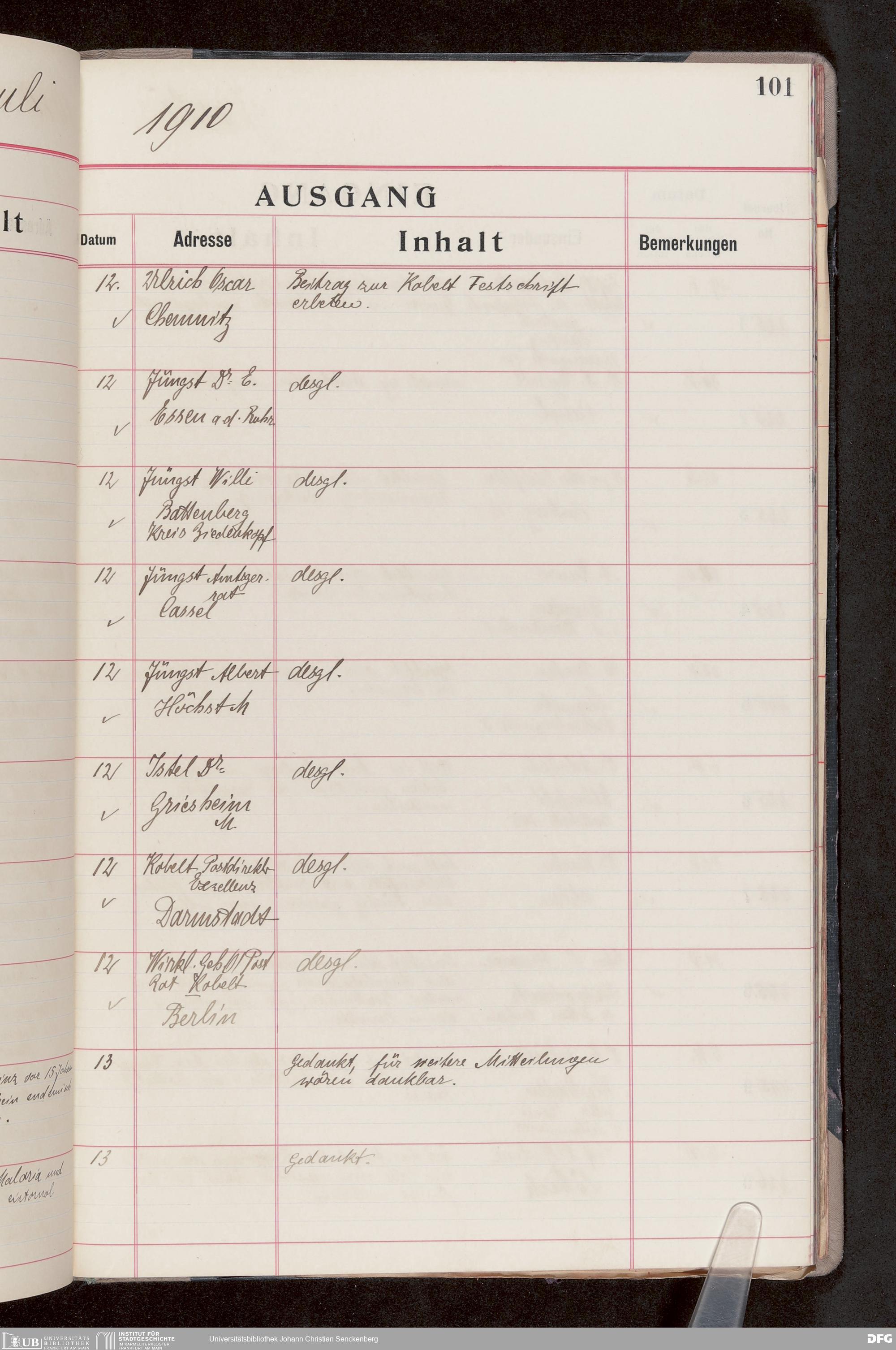 V176 Senckenberg Gesellschaft für Naturforschung, 682 - Journal der eingegangenen und ausgegangenen Briefe