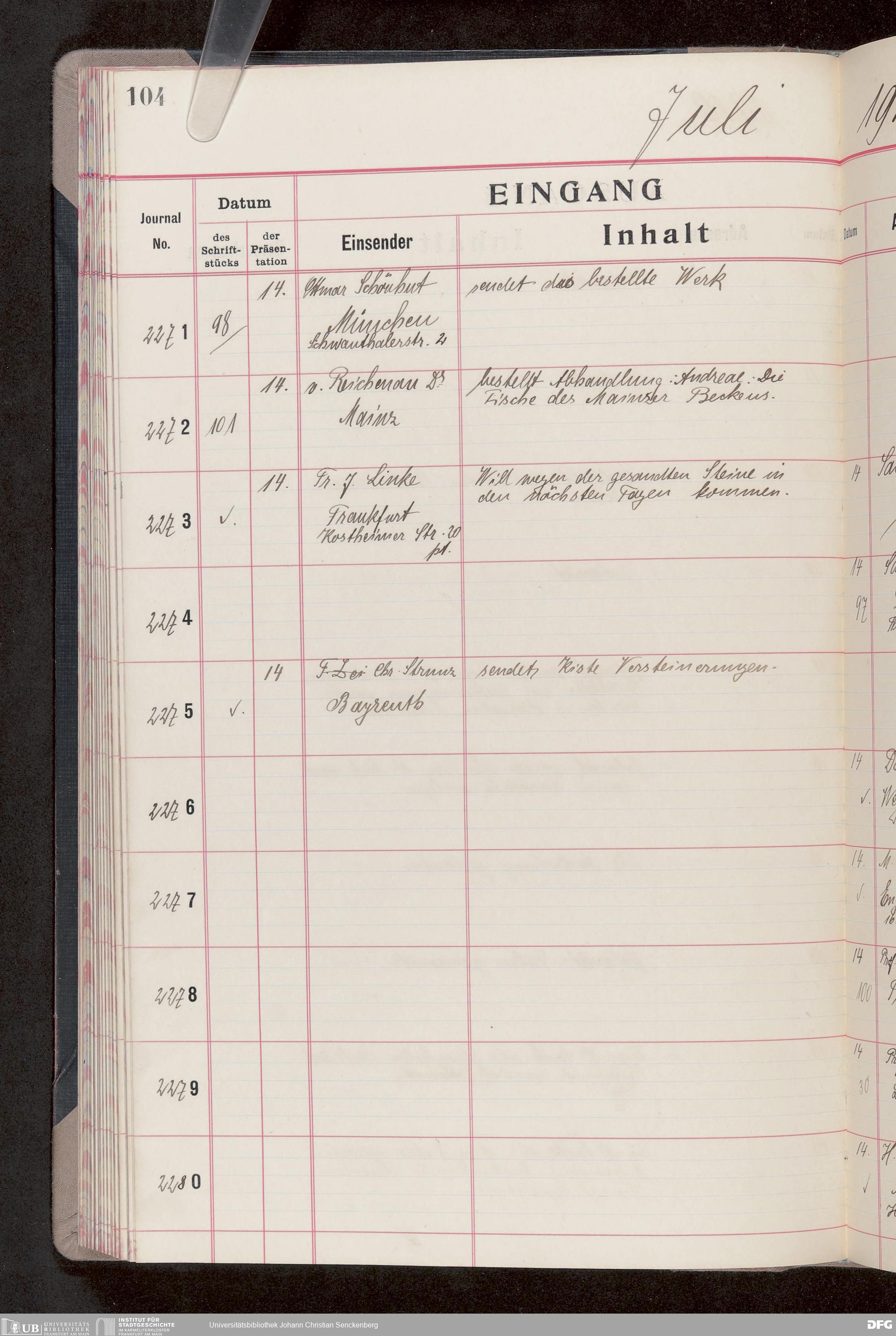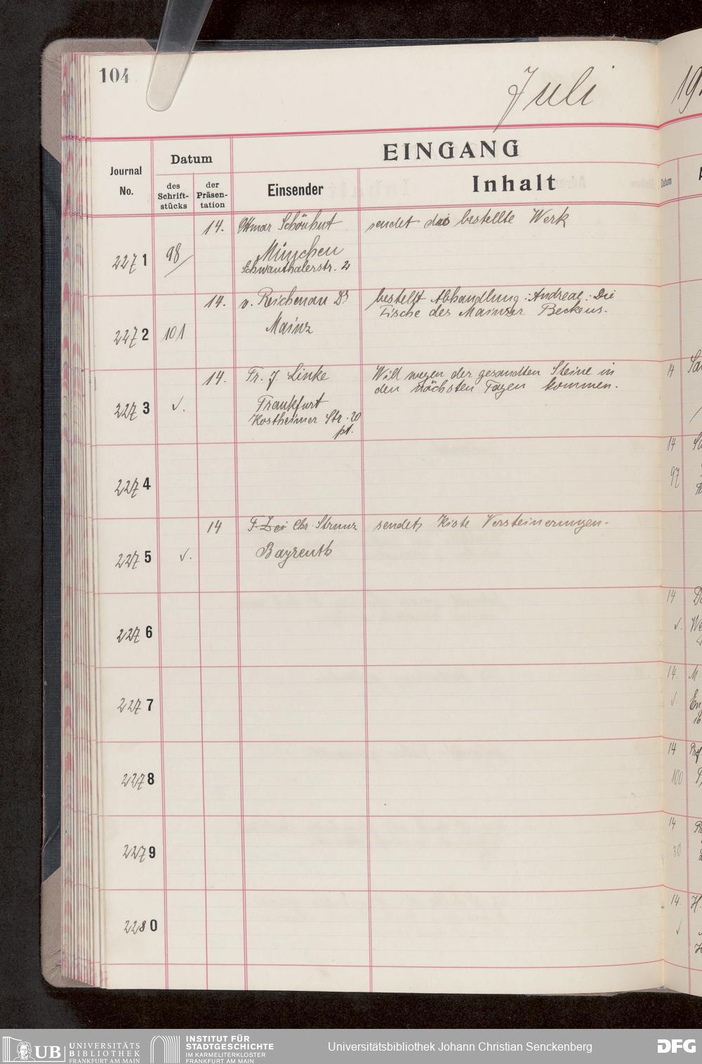 V176 Senckenberg Gesellschaft für Naturforschung, 682 - Journal der eingegangenen und ausgegangenen Briefe