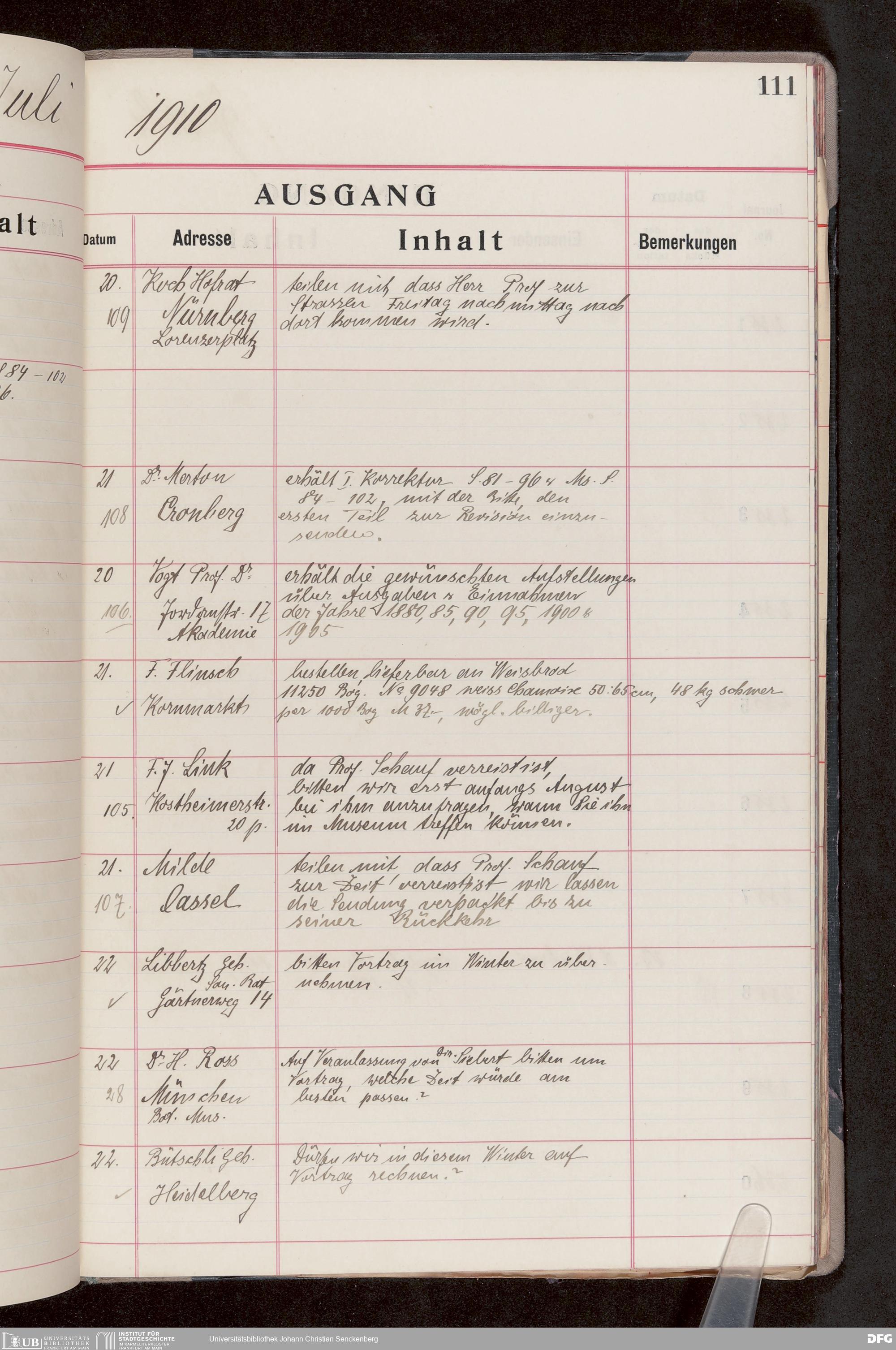 V176 Senckenberg Gesellschaft für Naturforschung, 682 - Journal der eingegangenen und ausgegangenen Briefe