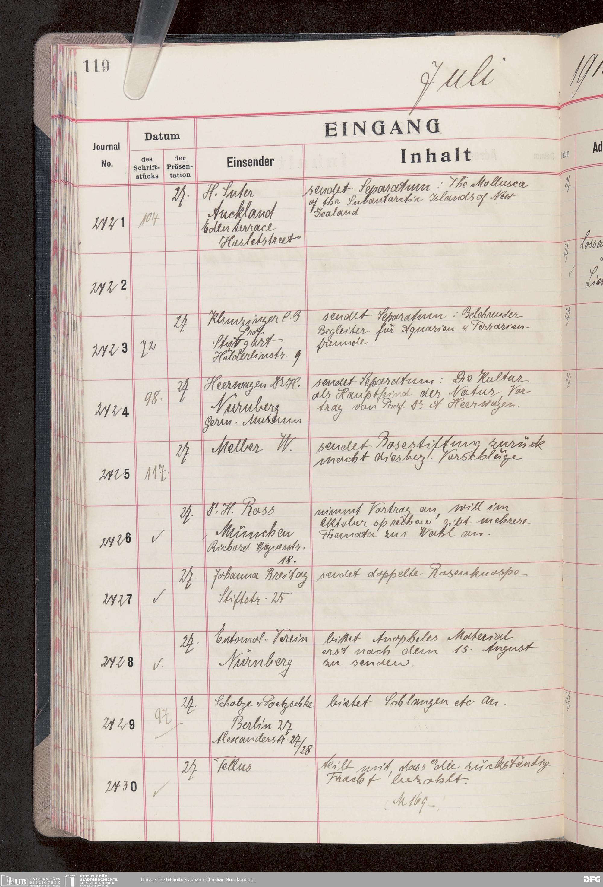 V176 Senckenberg Gesellschaft für Naturforschung, 682 - Journal der eingegangenen und ausgegangenen Briefe