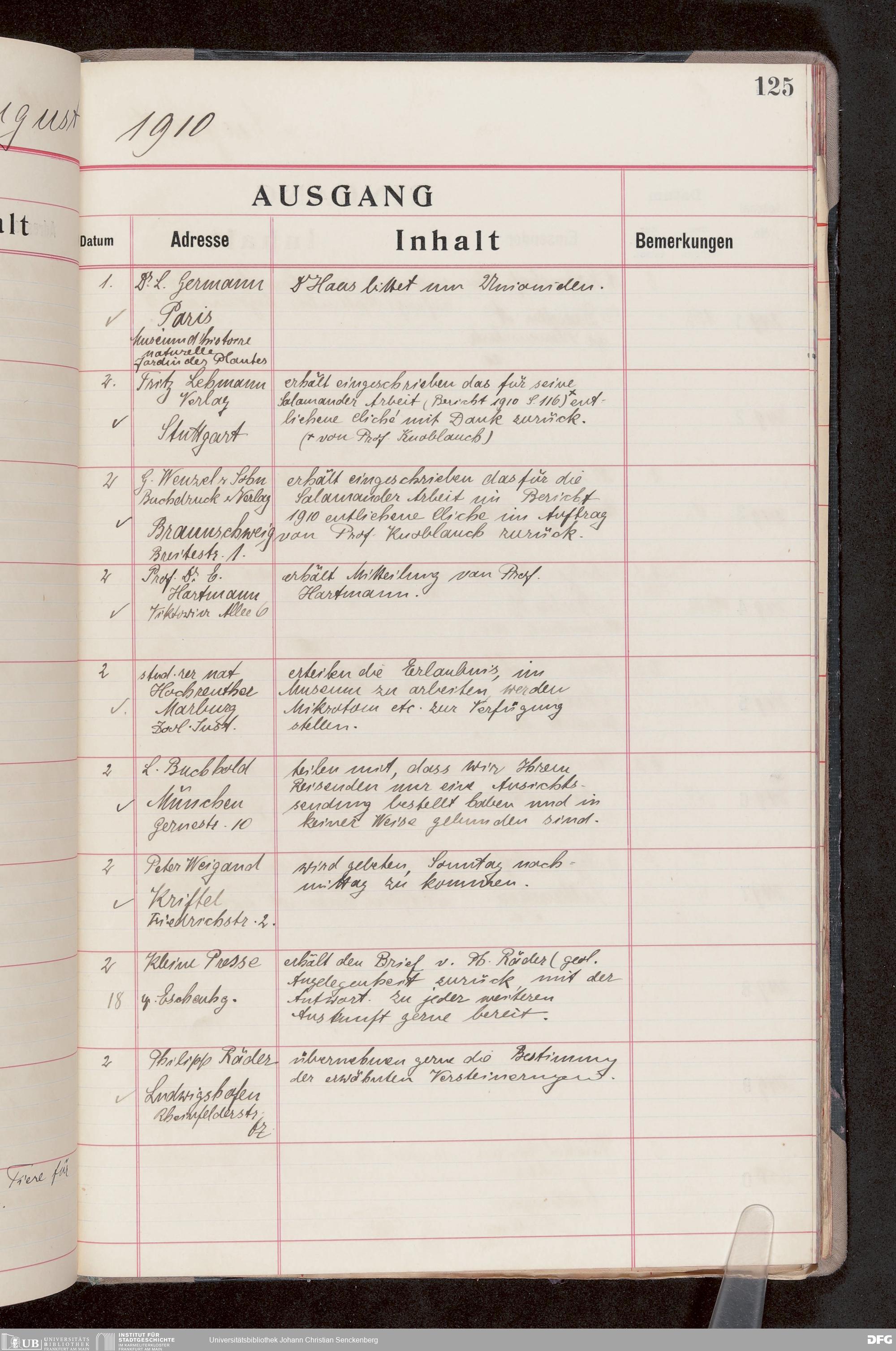 V176 Senckenberg Gesellschaft für Naturforschung, 682 - Journal der eingegangenen und ausgegangenen Briefe